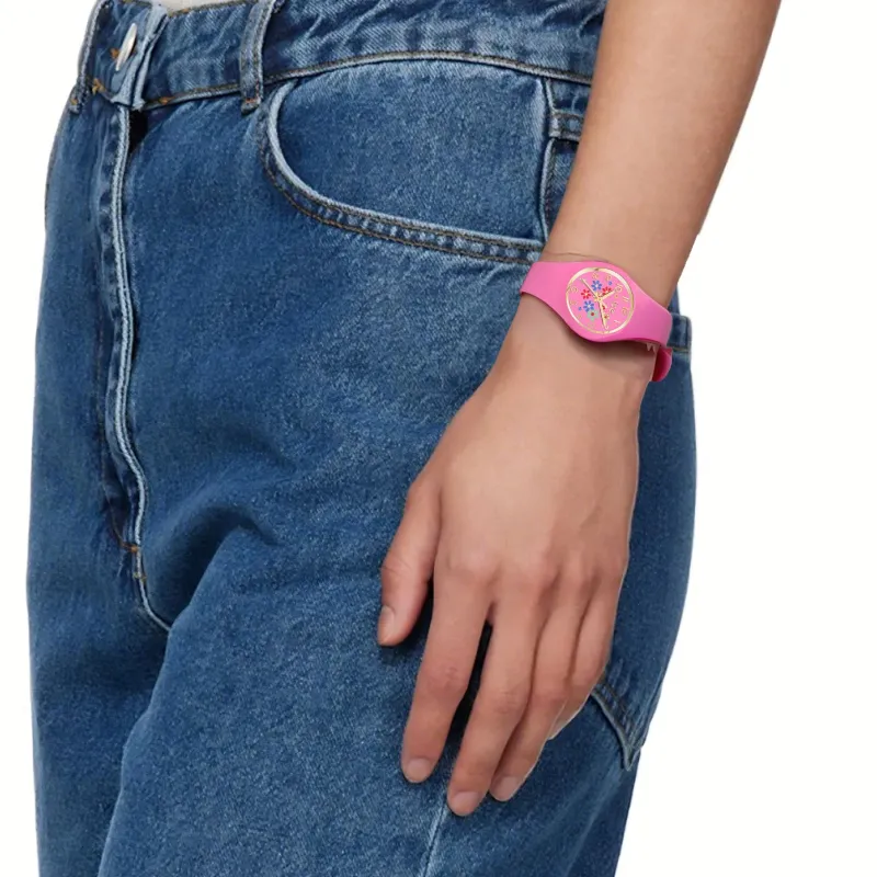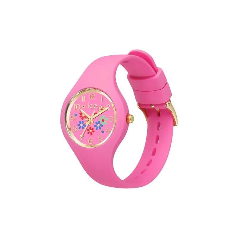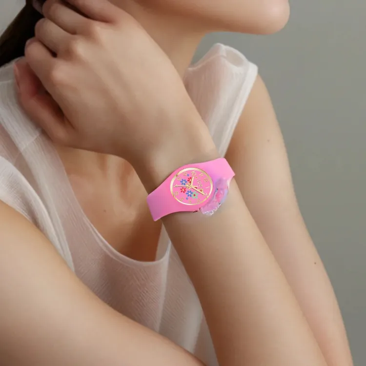 ICE WATCH Ледяной Цветочный Дизайн Pinky Bloom Наручные Часы Кварцевый Механизм Силиконовый Ремешок 28 мм Многоцветный Циферблат Часов Женские Часы