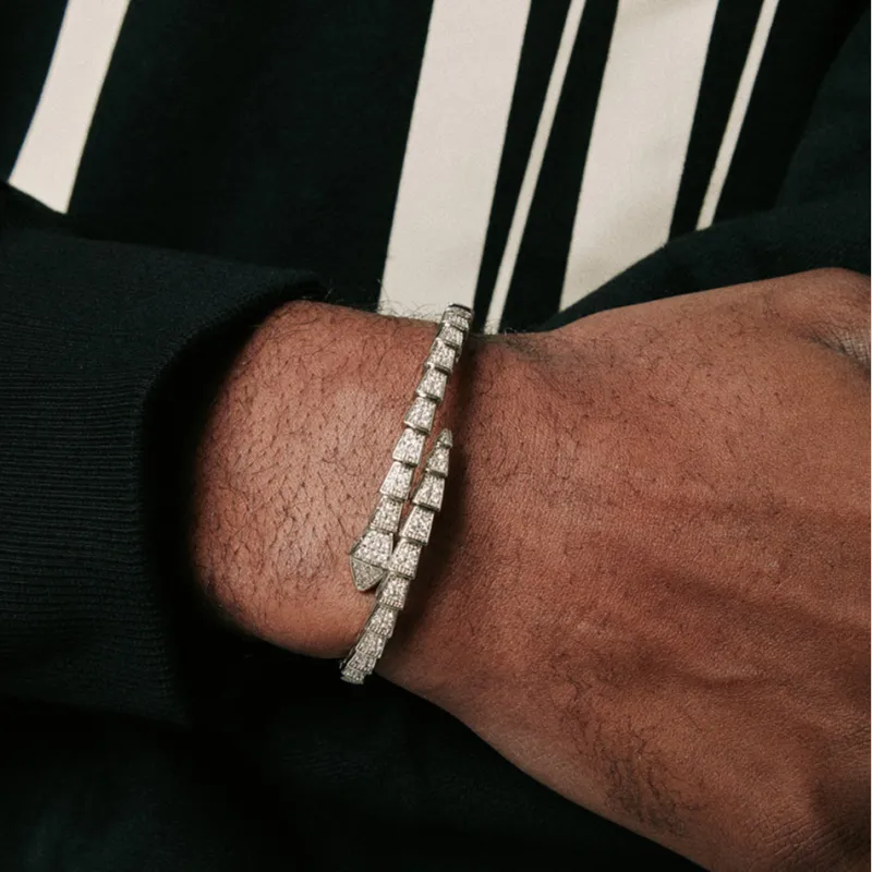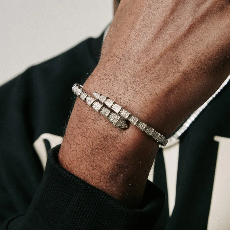 Механический браслет с символом змеи и костяной текстурой