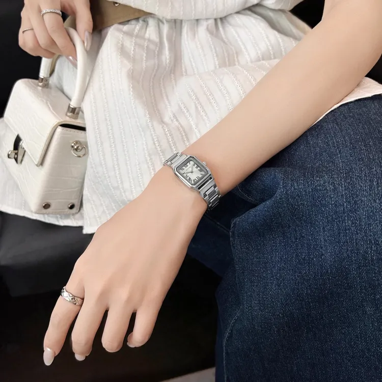 Серебряный синий циферблат.