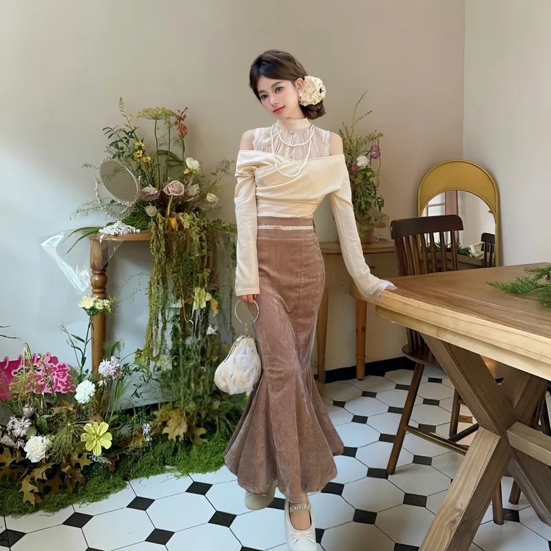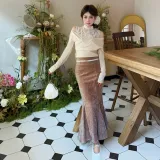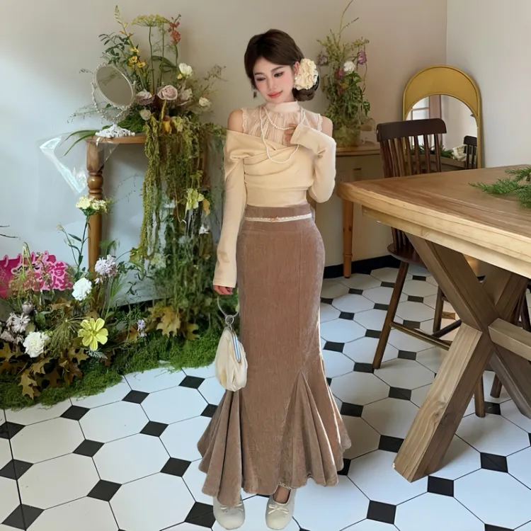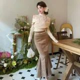Комплект:Имитация двухслойности Топ + Платье «рыбий хвост»