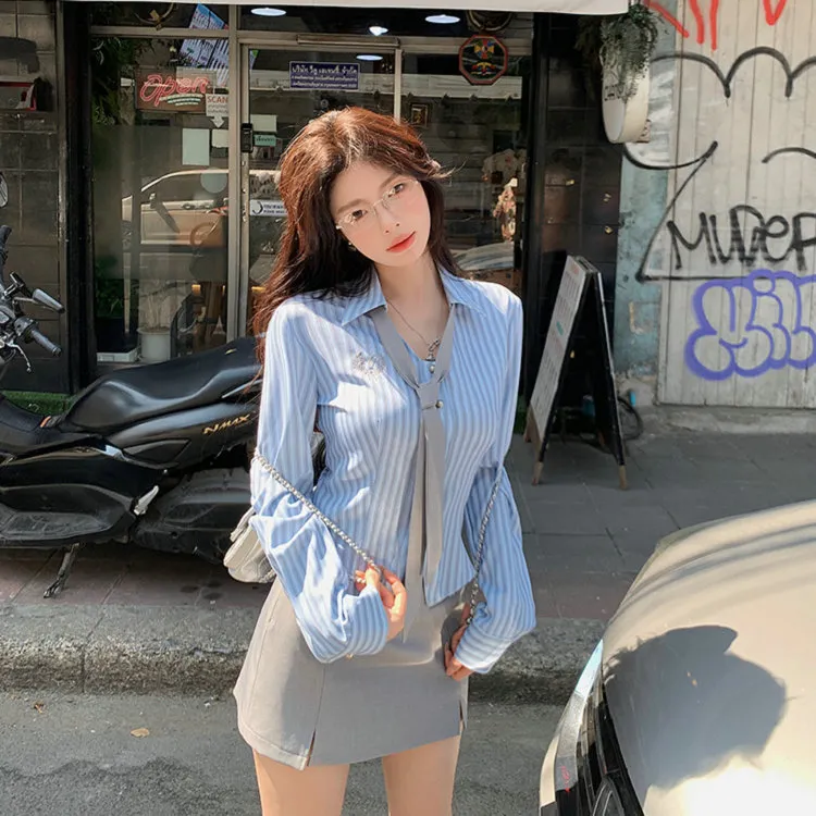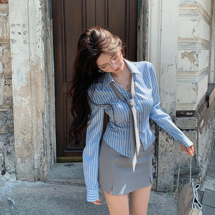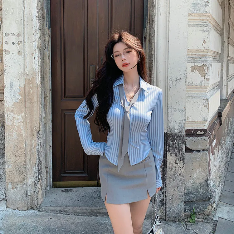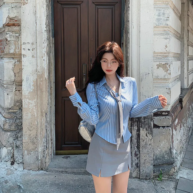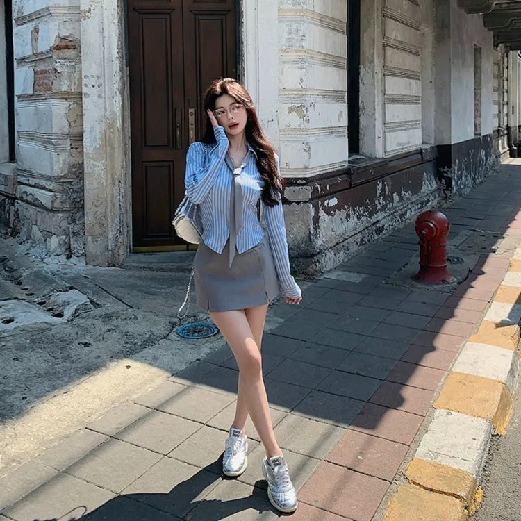 Галстук Синий Рубашка + Серая Юбка
