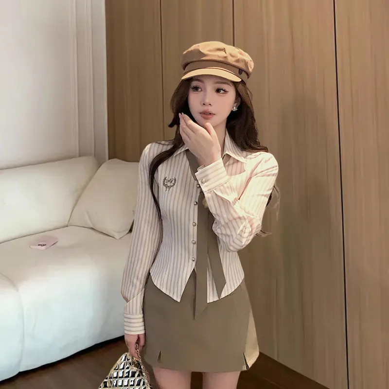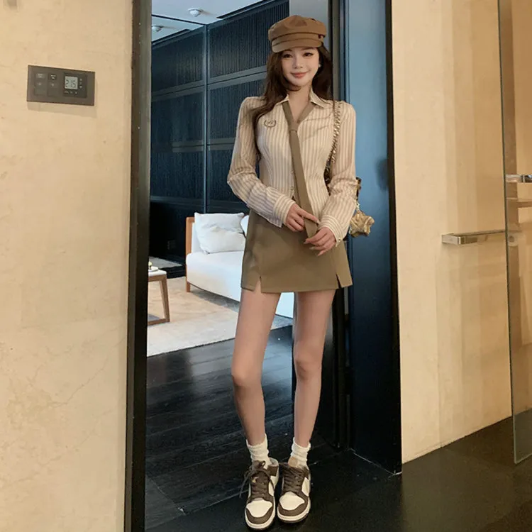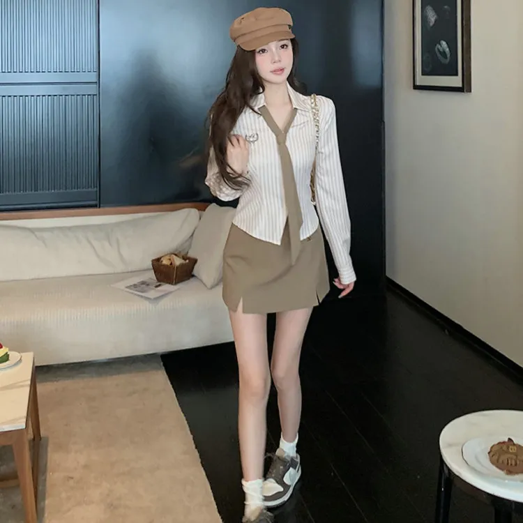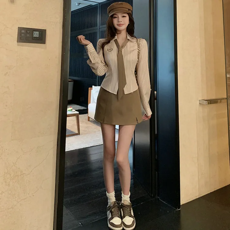 Комплект:Галстук Кофе Рубашка + Кофе Юбка