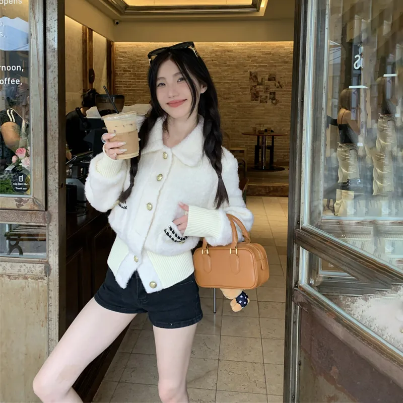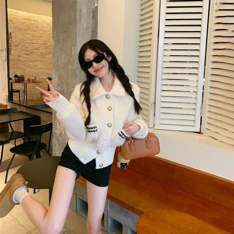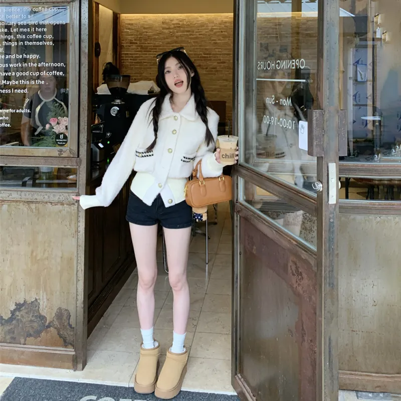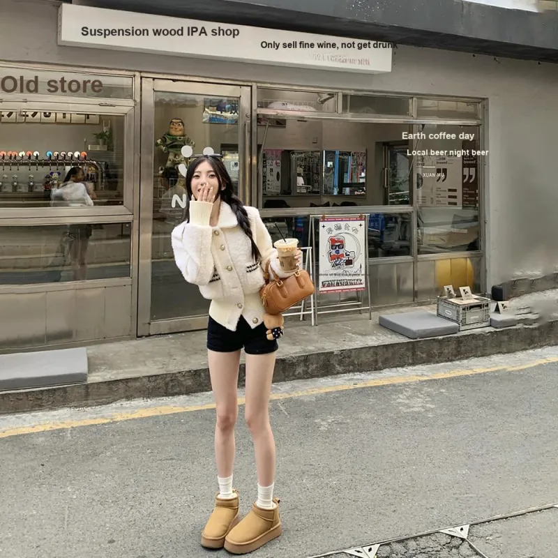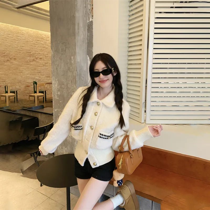 IDLE SOUL Бархат Feel Пальто Женские Экрю
