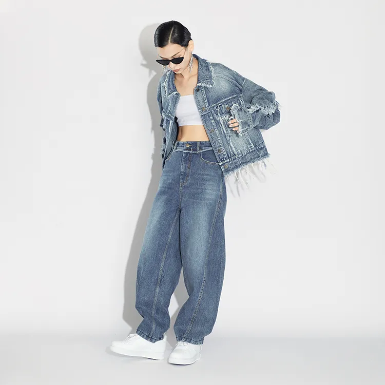 IEW.H Шаровары Джинсы Женские Джинсовый синий