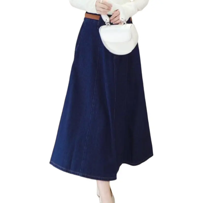 IHIMI Деним Длинный Юбка Женские Темный Джинсовый Синий