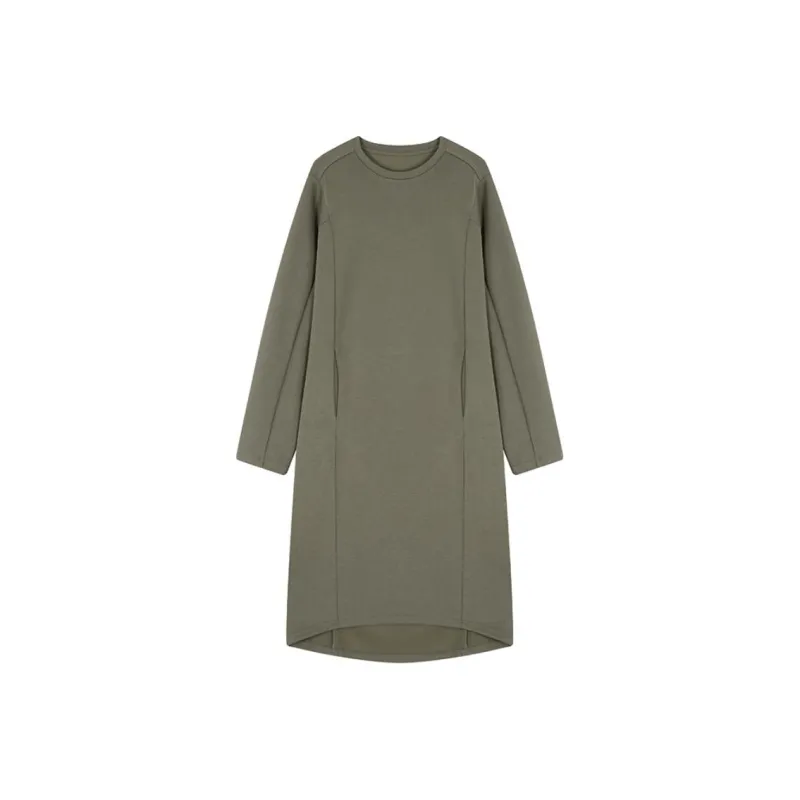 IHIMI Длинное платье с длинными рукавами женское кофейно-зеленый