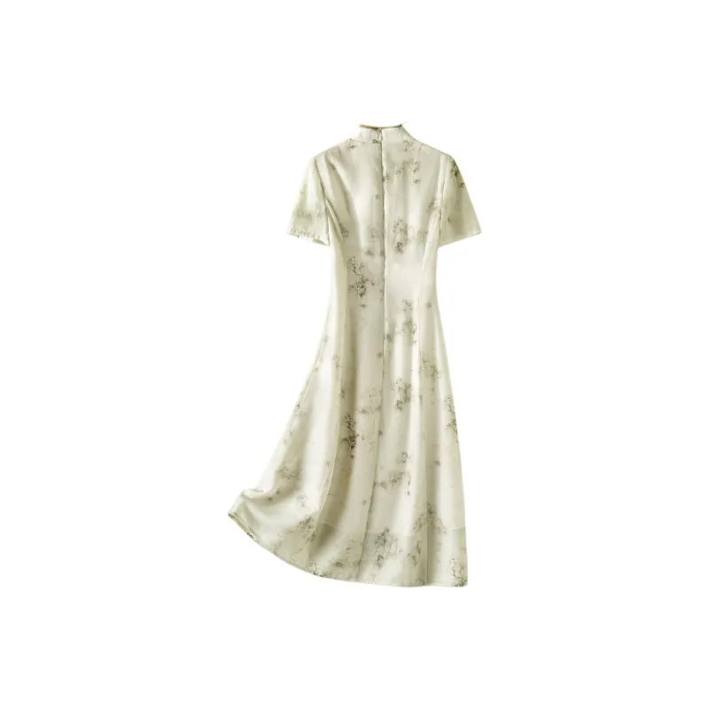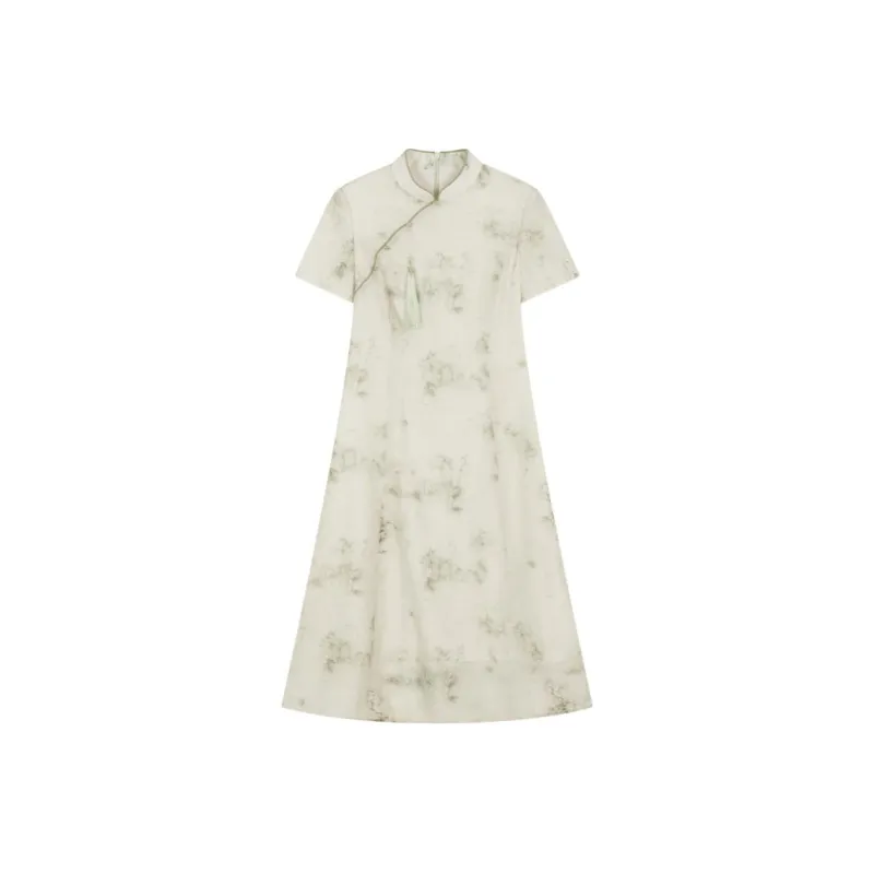 IHIMI Короткий рукав Платье Женское Бамбуковый зеленый