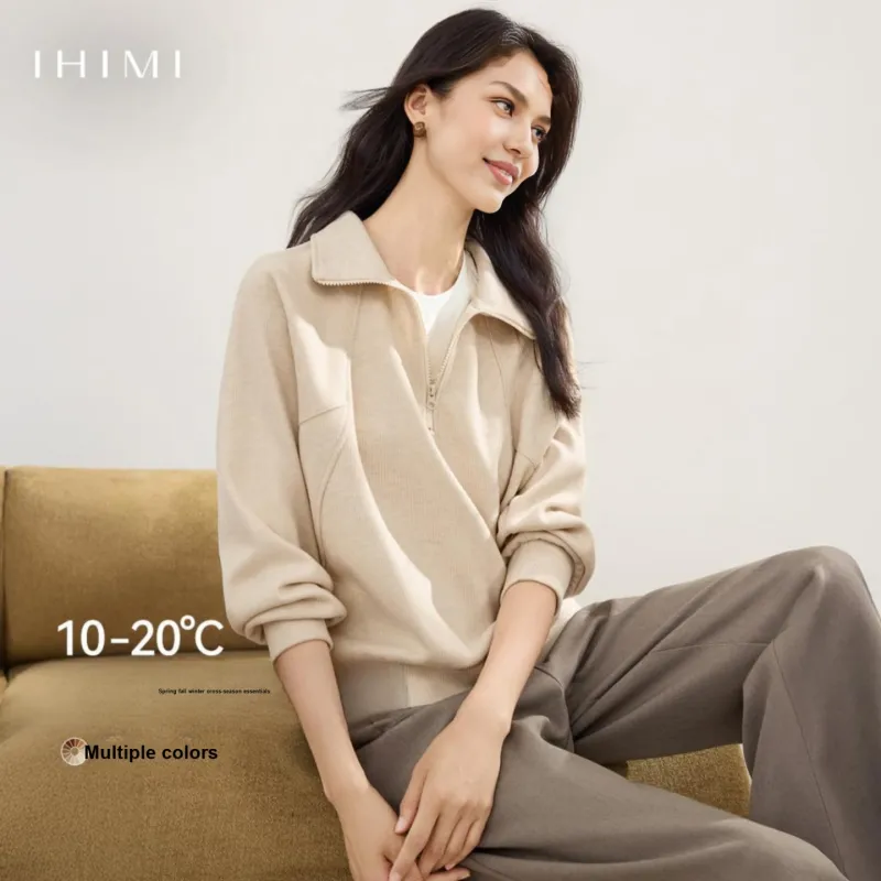 IHIMI Серый Бежевый Белый Женский Свитшот