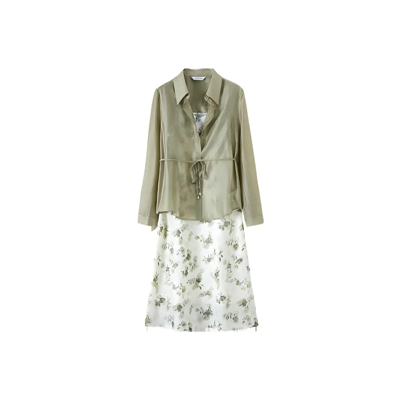 IHIMI Серо-зеленый + Многоцветный Женские Комплекты с юбкой