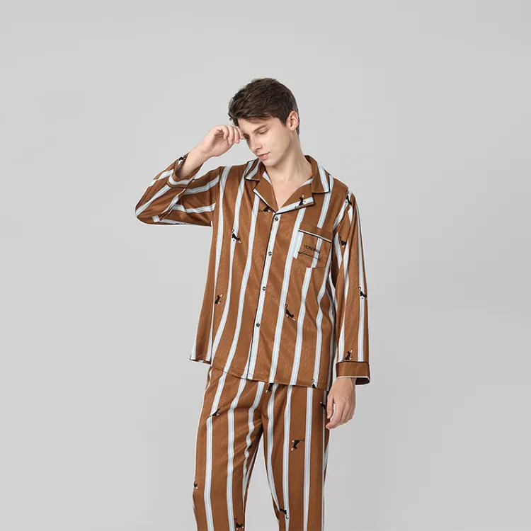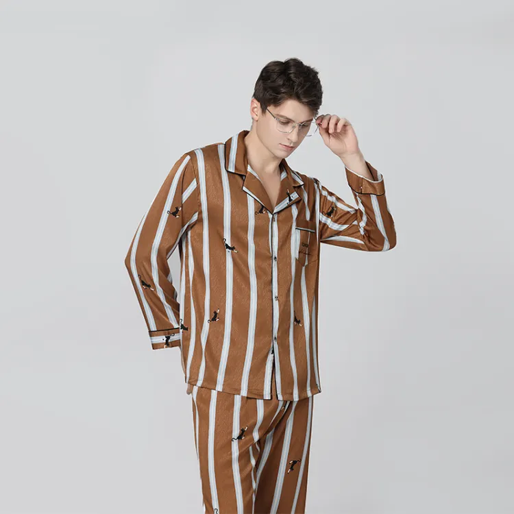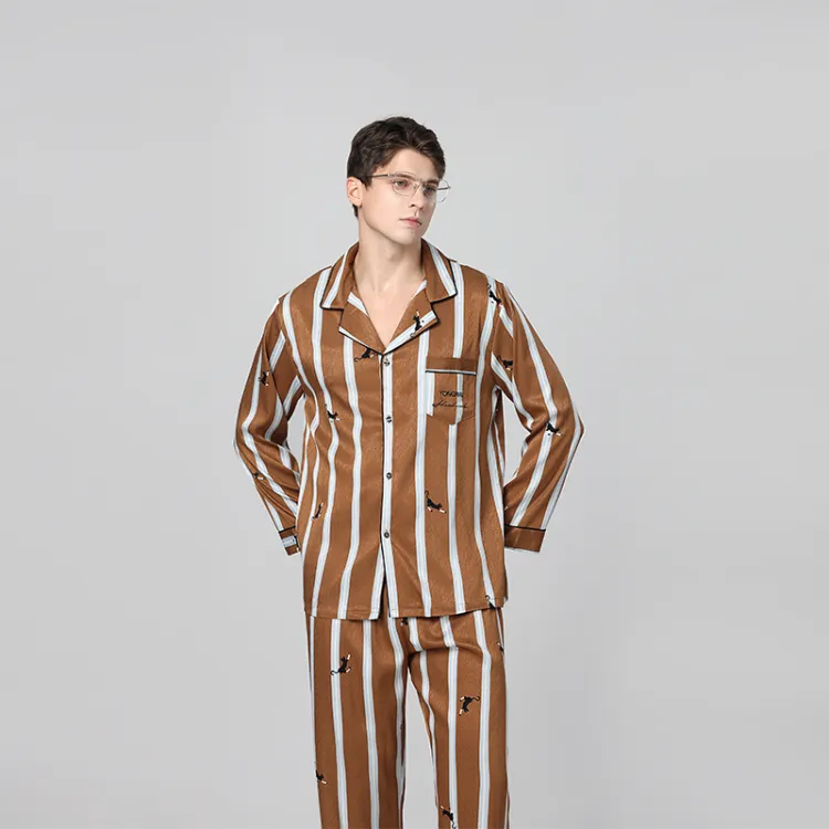 Кошачий принт, полоска, мужской комплект с длинным рукавом