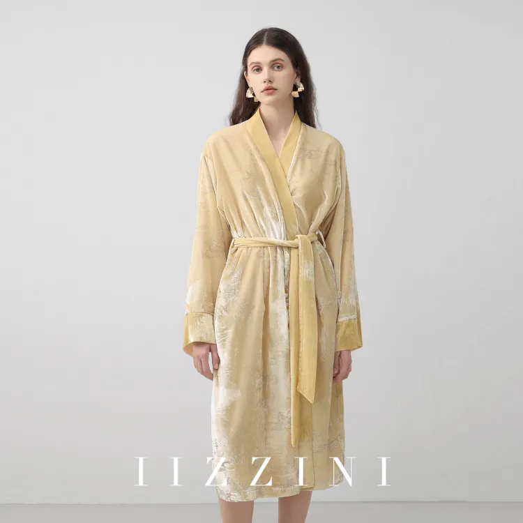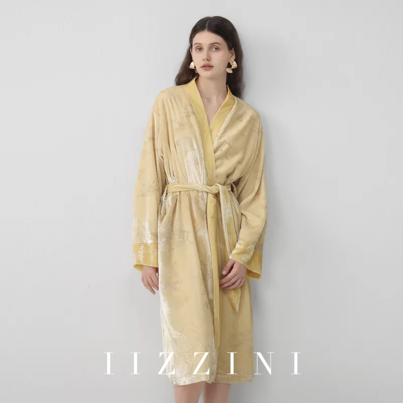 IIZZINI Золотистая Hill Вода Кружево Вверх Велюр Женские Сон Сиреневый Женские Банные халаты