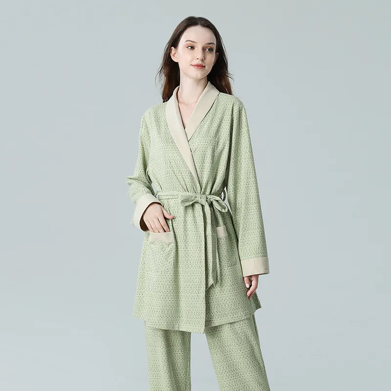 [Подарочная коробка комплект] Винтажный зеленый узор, тонкий коралловый флис, шнуровка