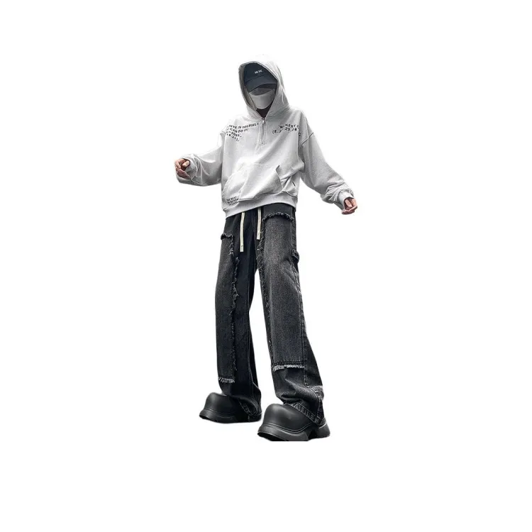 IJRJ Джинсы Унисекс Камень Мытый Серый