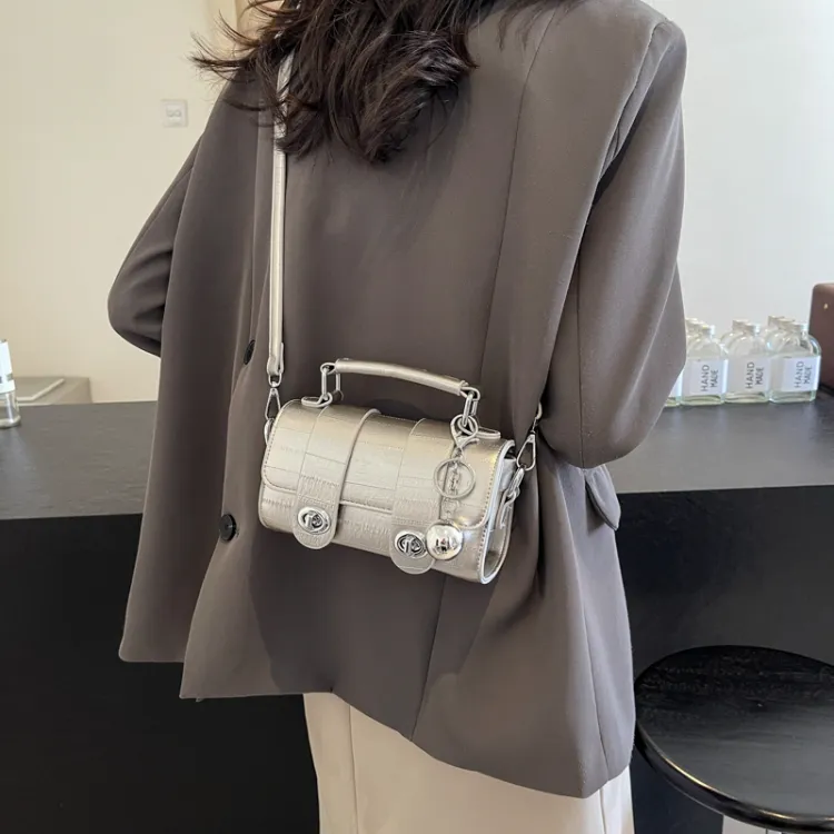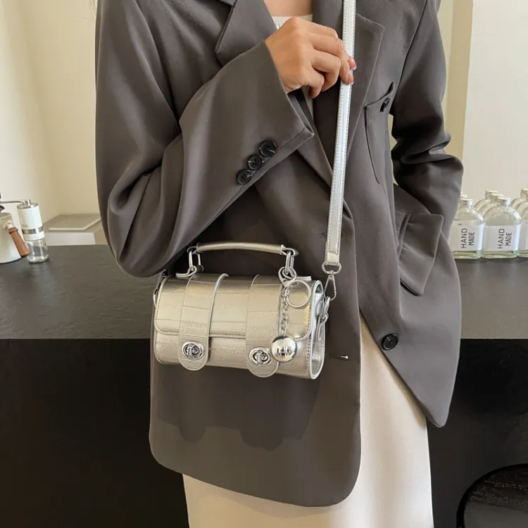 Iman's House ПУ (полиуретан) Сумка через плечо Сумка Женская Серебряный Экрю Черный