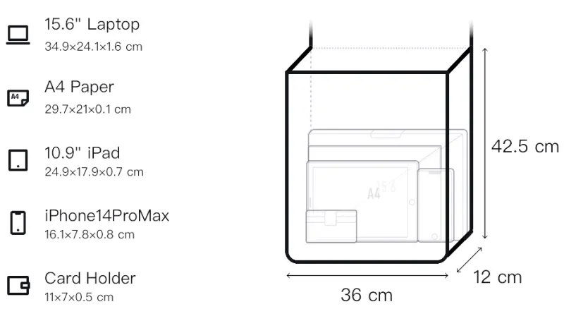L36*W12*H42,5см Маленькая сумка: Длина (размер в длину): 23,5см, Ширина: 7см, Длина корпуса: 17см