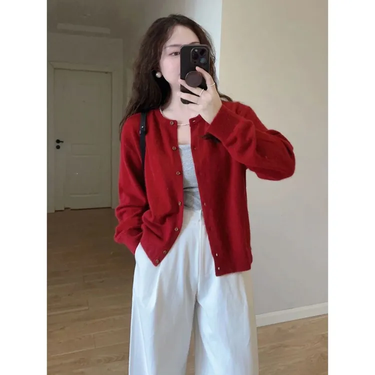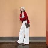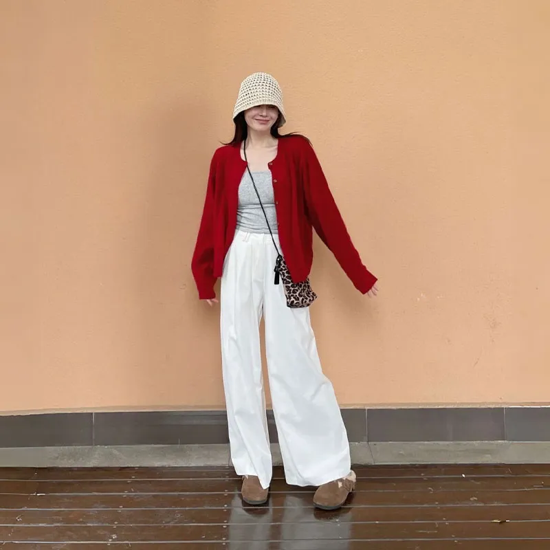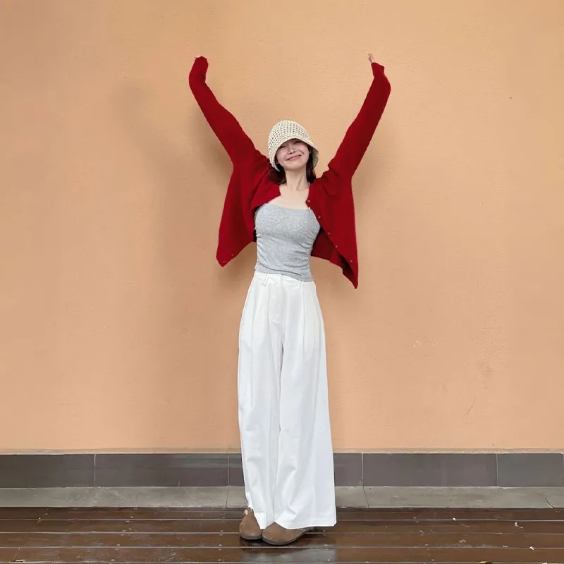 Цвет:Красный кардиган + топ на бретелях + широкие штаны [трехкомпонентный комплект]