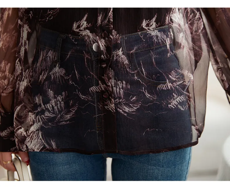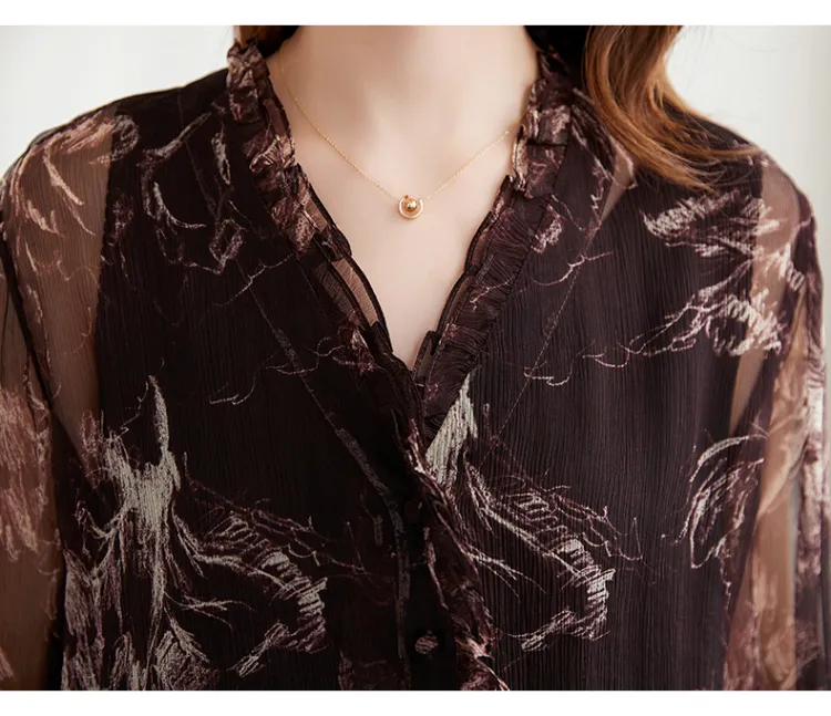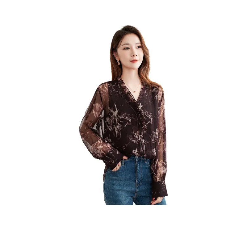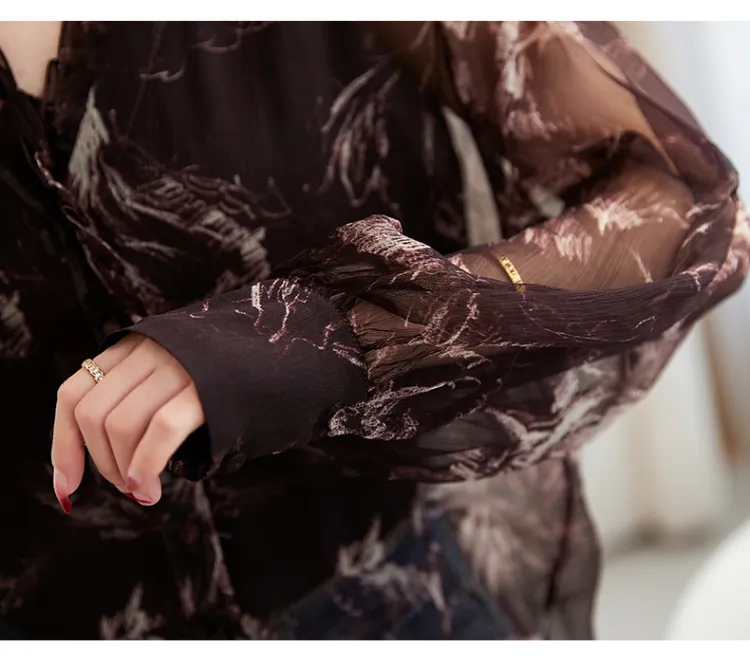 Ink Beauty Длинный рукав рубашка женский шоколад