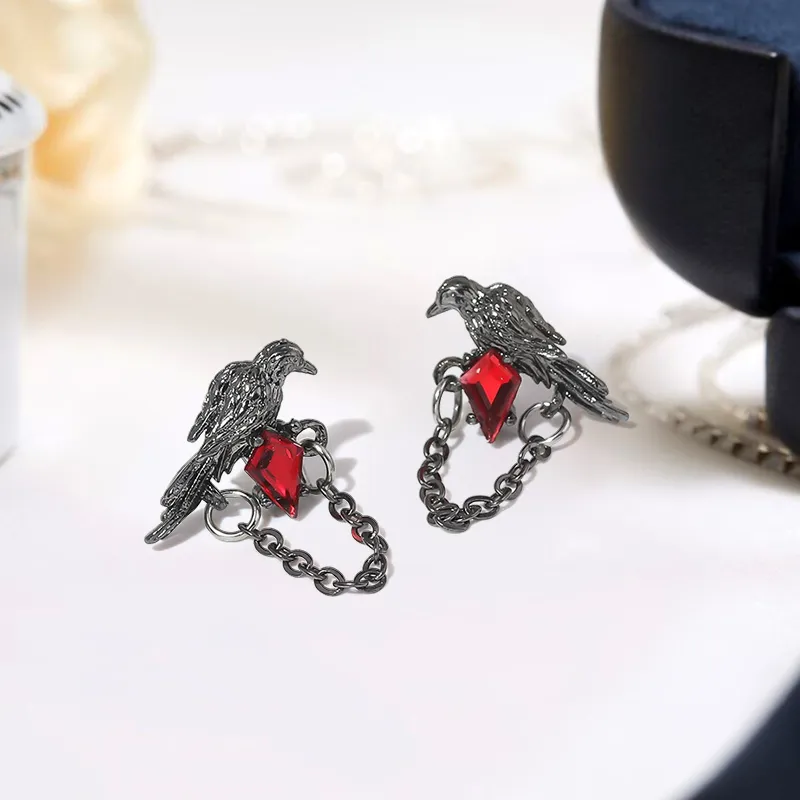 Ворон пьет воду, серьги-гвоздики