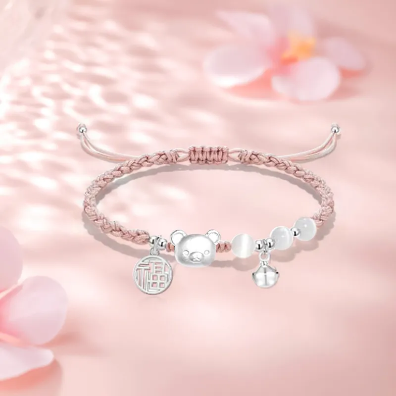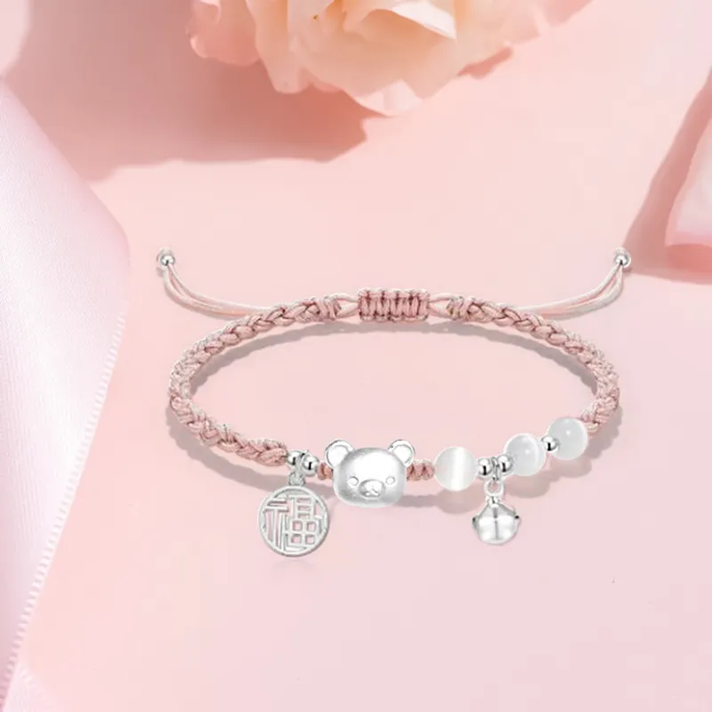 Стиль:Колокольчик Bear Браслет-шнурок-Розовый