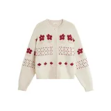 Белая пряжа: 89,6% полиэстер, 7,2% полиамид, 3,2% эластан Абрикосовая пряжа: 81,6% полиэстер, 15,7% акрил, 2,7% эластан Красная пряжа: 45,3% акрил, 31,7% полиэстер, 23% полиамид