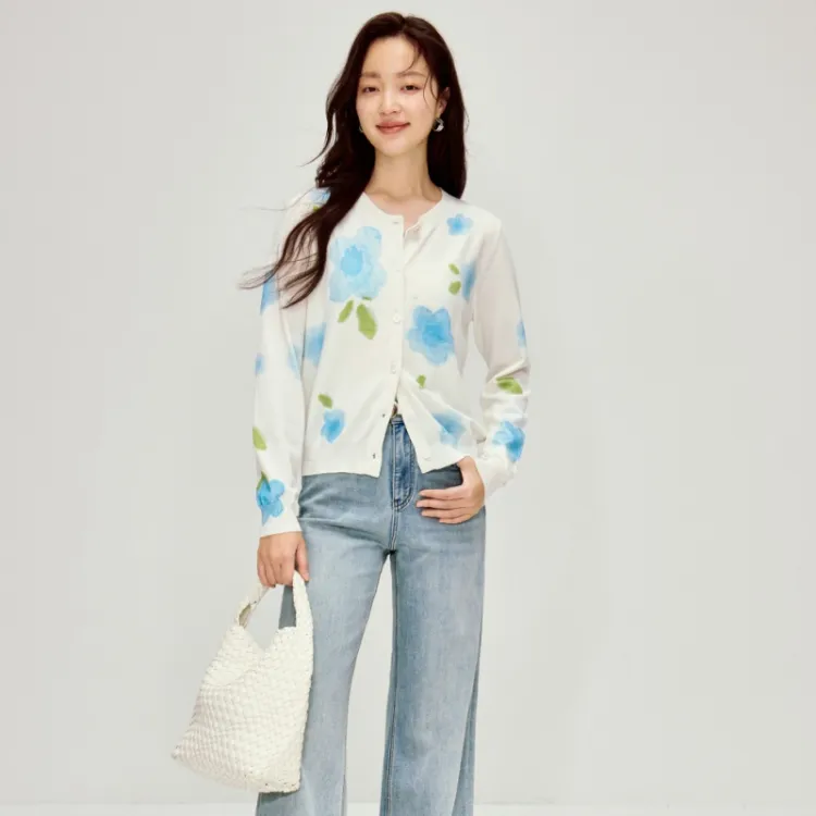 Inman Белый с синими цветами Женская трикотажная одежда