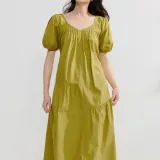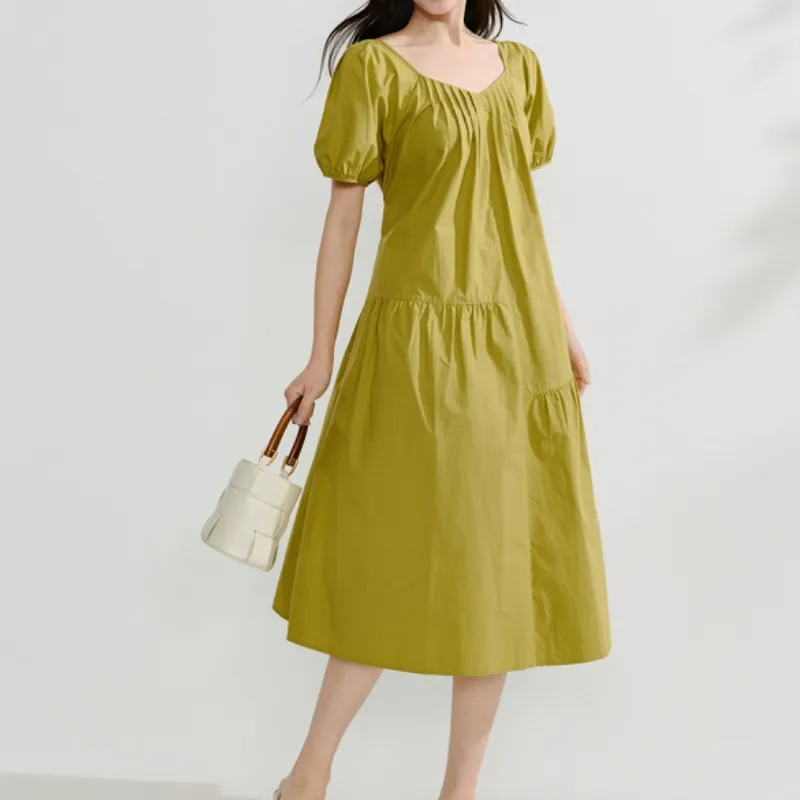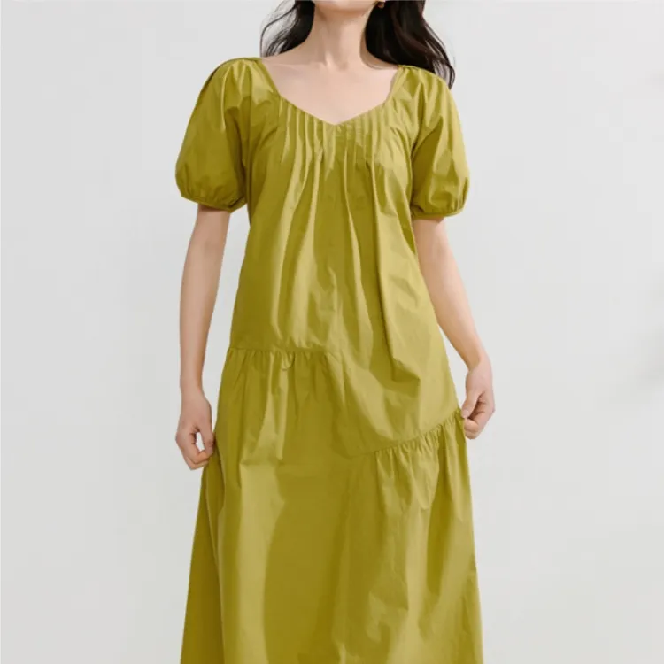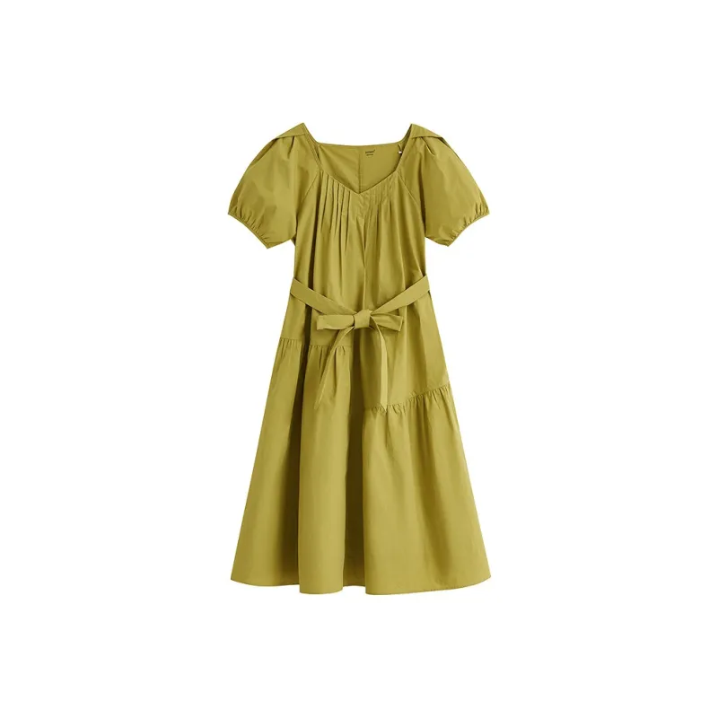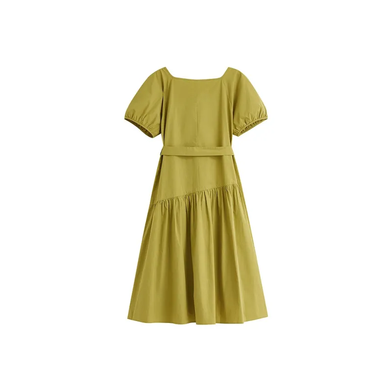 Inman Короткий рукав Платье Женское Весеннее травяного зеленого цвета