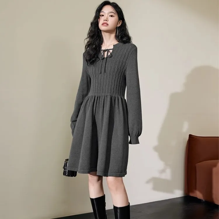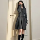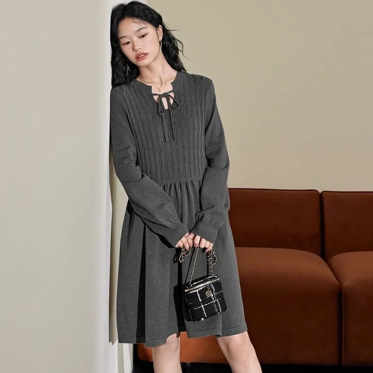 IQC Длинное платье с длинными рукавами женское серое