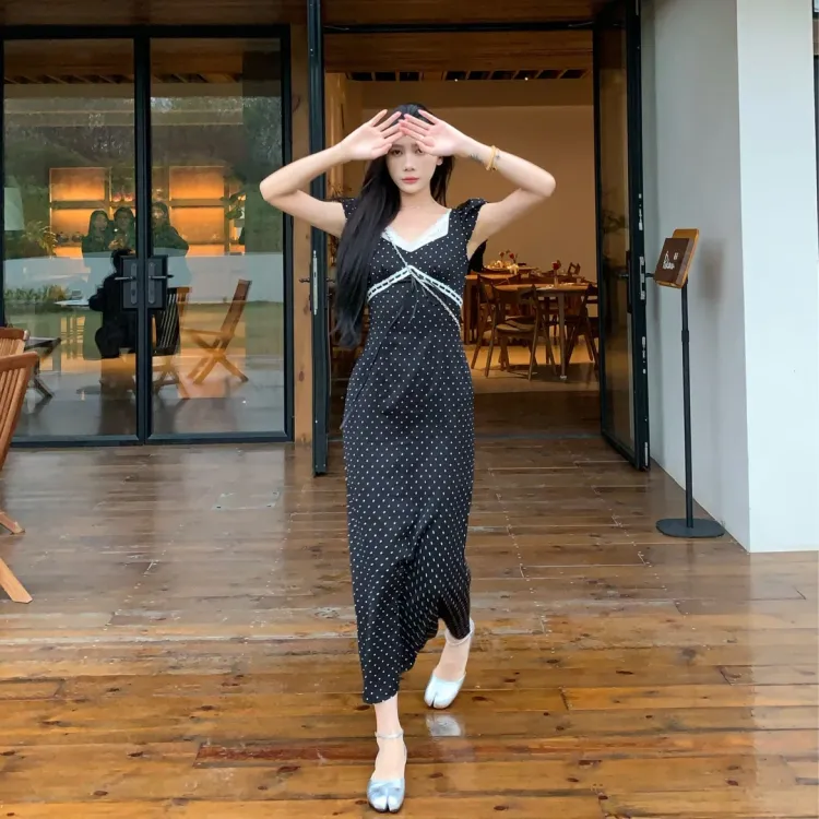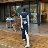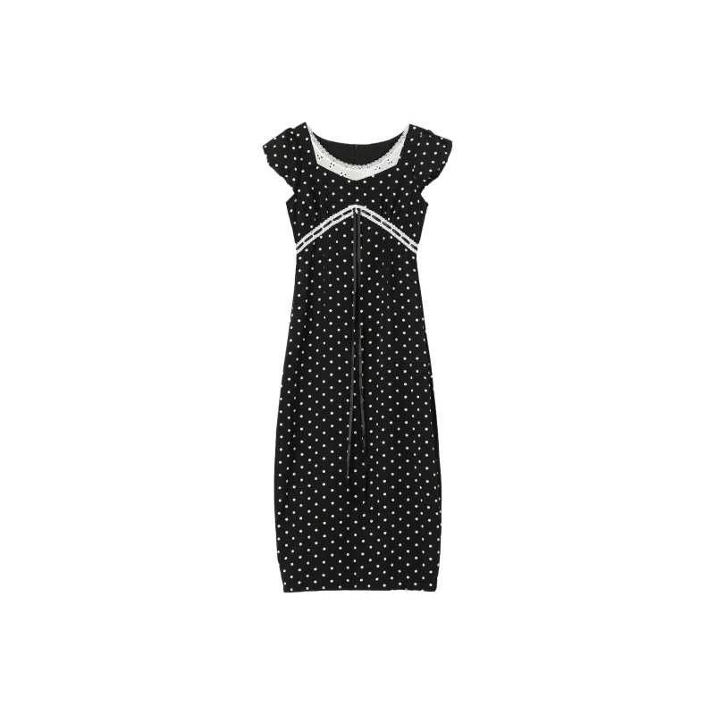 IQC Короткий рукав Платье Женское Черное