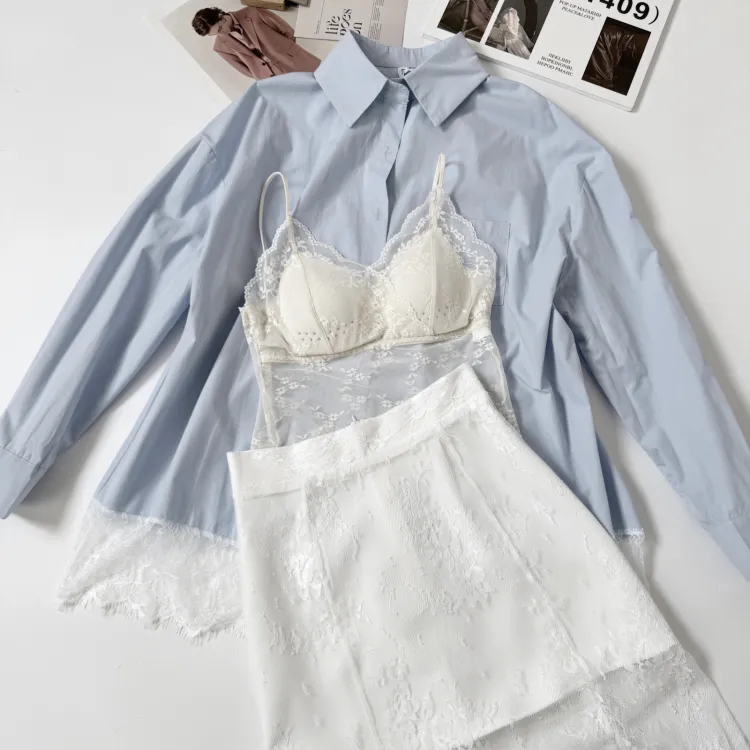 Трехкомпонентный комплект (Гладкая спина, Рубашка, Платье из кружева)