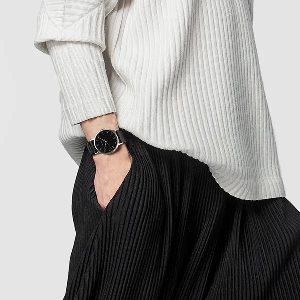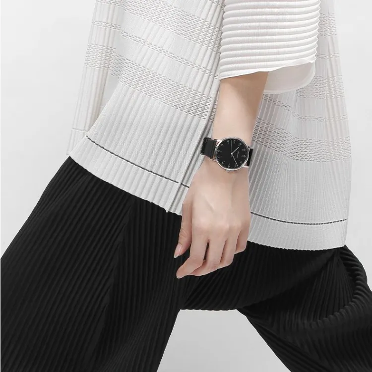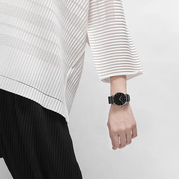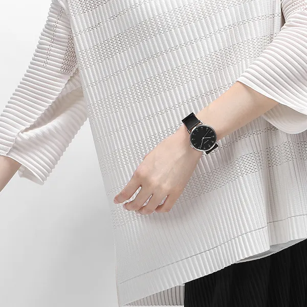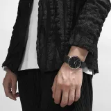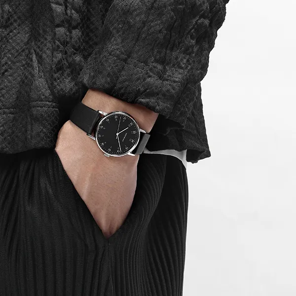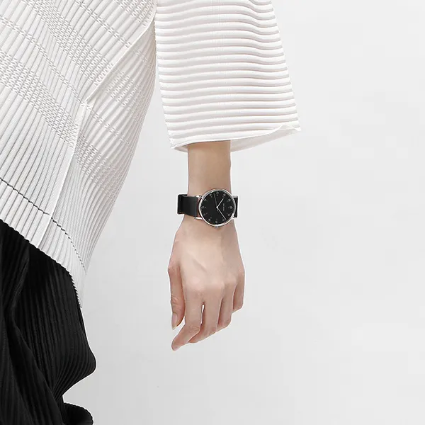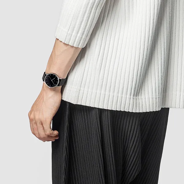 ISSEY MIYAKE Кварцевый механизм кожаный ремешок часы унисекс черный циферблат модель NYAJ002Y