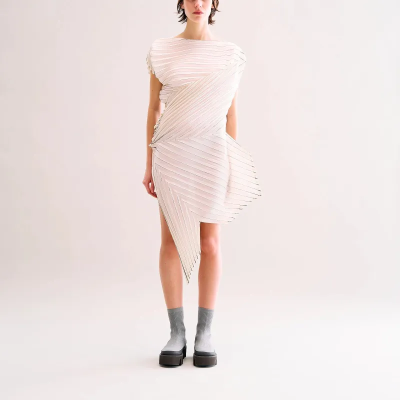 ISSEY MIYAKE Экрю Женские Короткие Платья с Рукавами