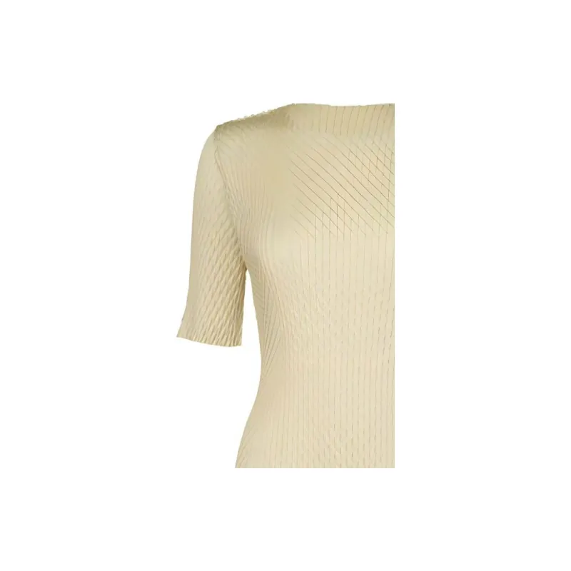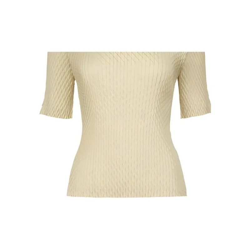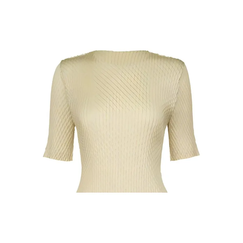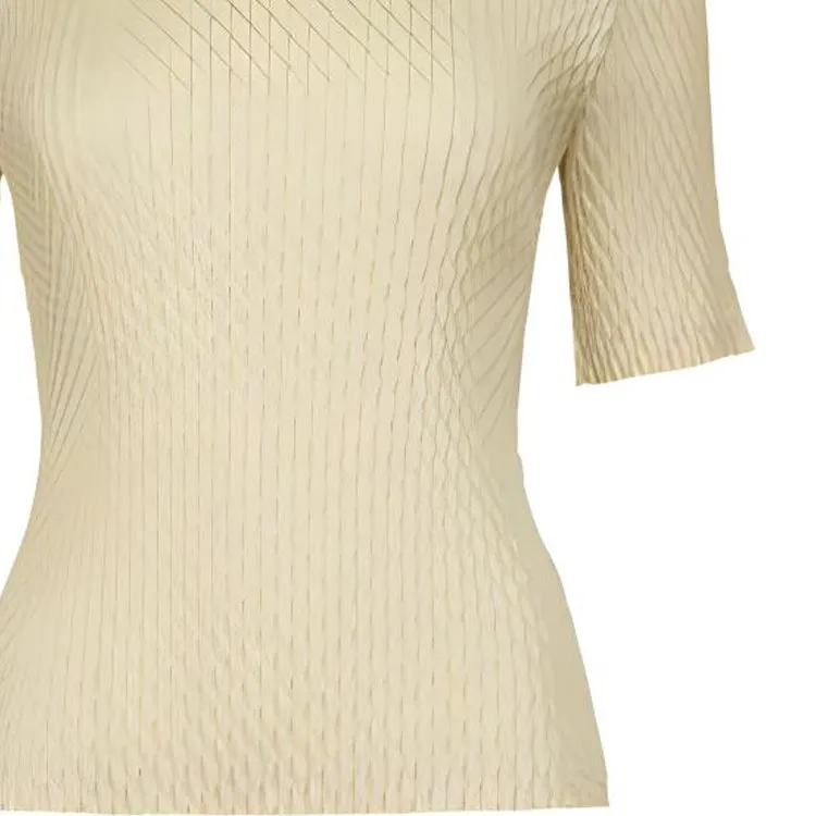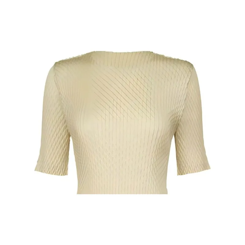 ISSEY MIYAKE Однотонный Круглый вырез Облегающий крой Пуловер Короткий рукав Т-рубашка Женская Желтая