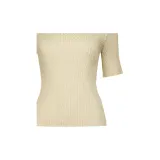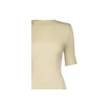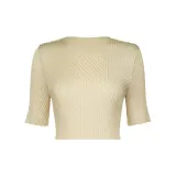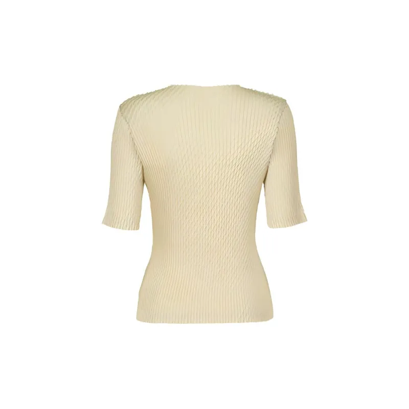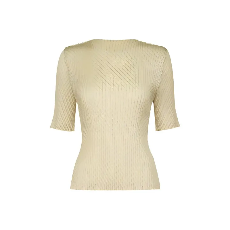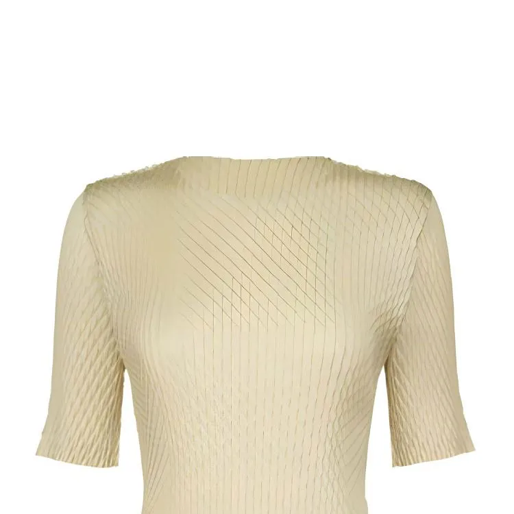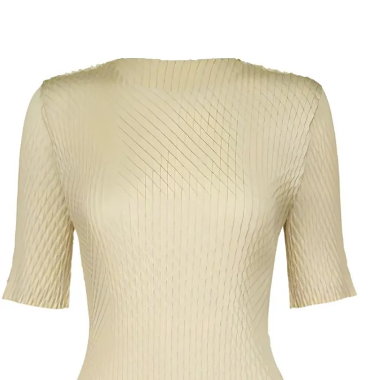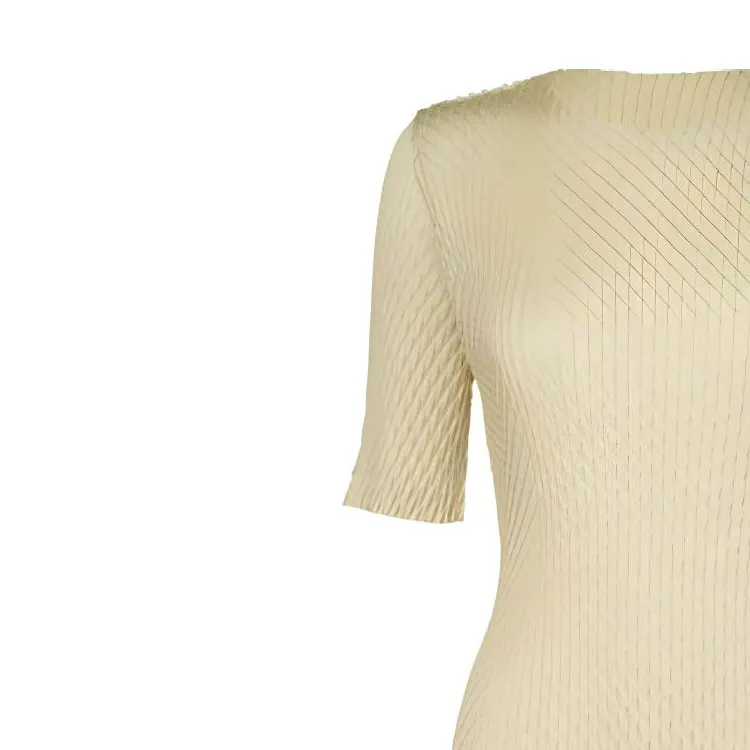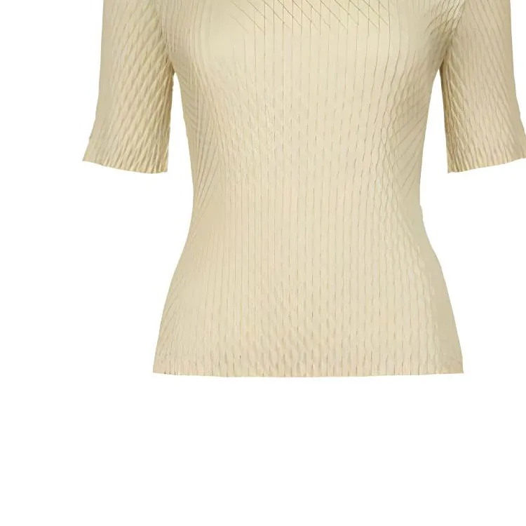 ISSEY MIYAKE Однотонный Круглый вырез Облегающий крой Пуловер Короткий рукав Т-рубашка Женская Желтая