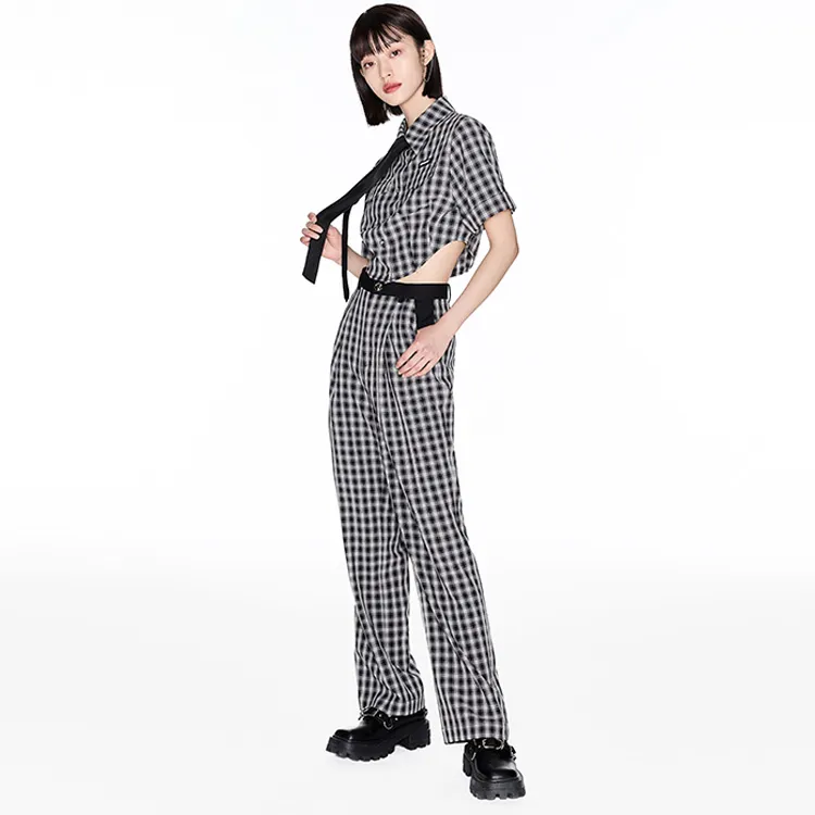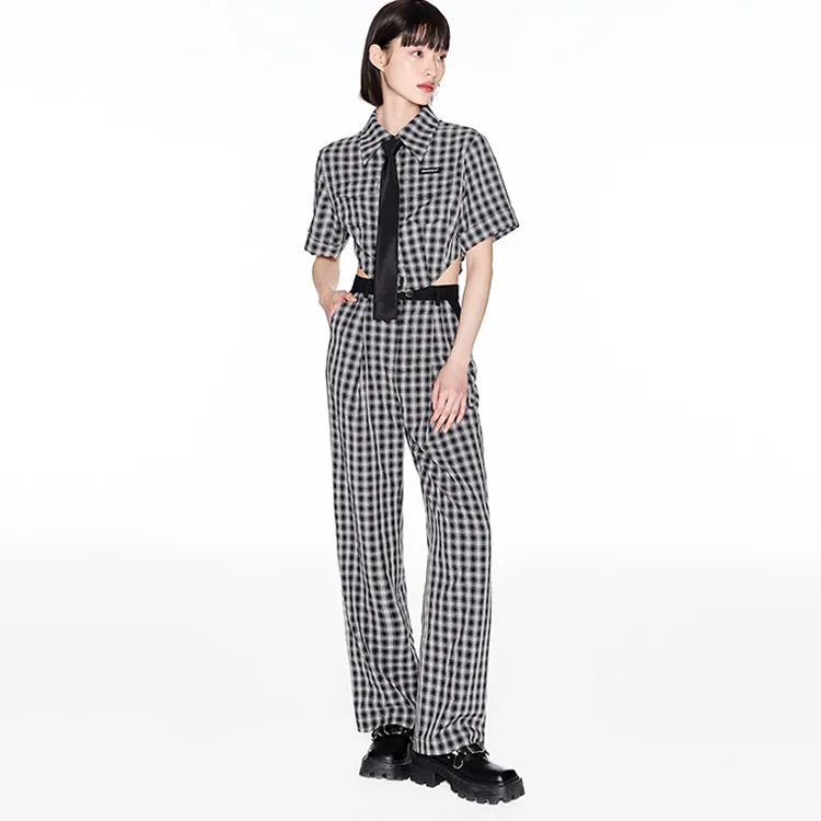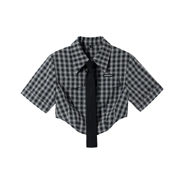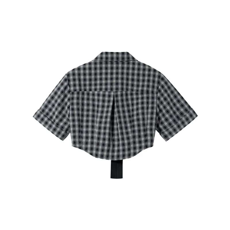 ITIB Серый черный клетчатый женские короткие топы