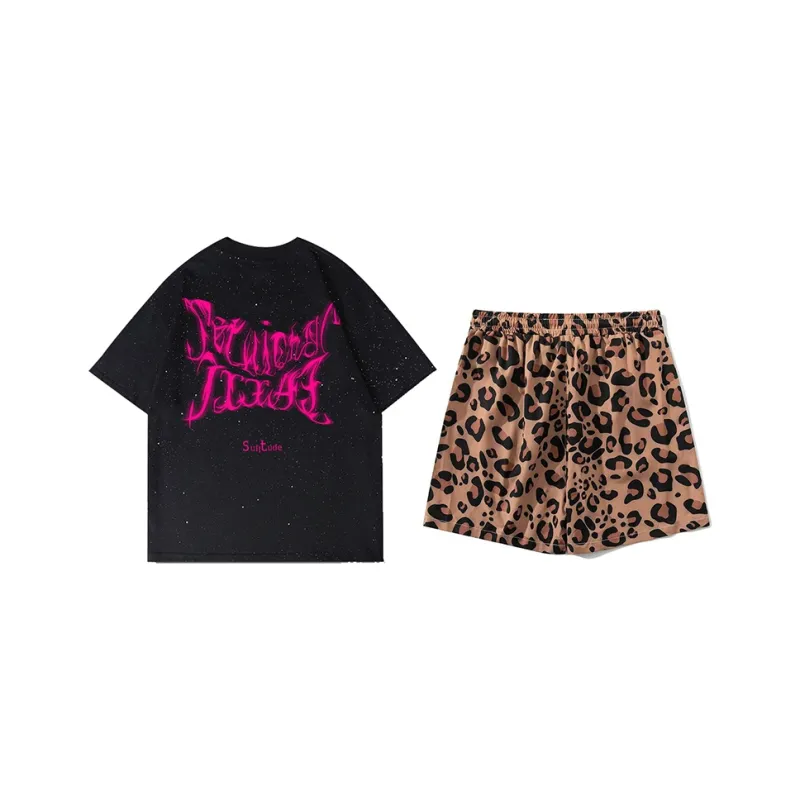 Леопардовый принт, шорты + черный гипсофил, призрачный