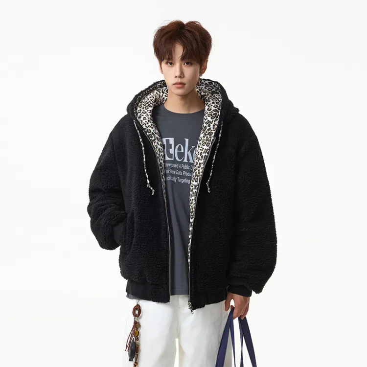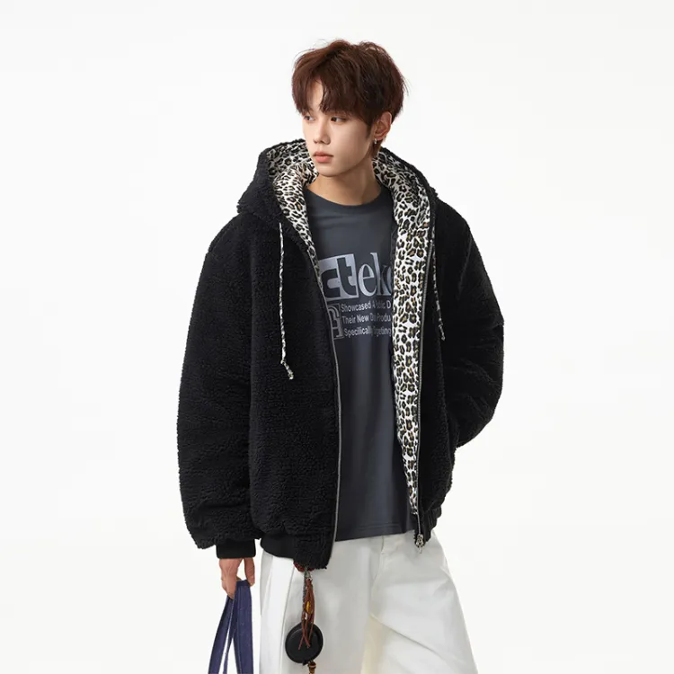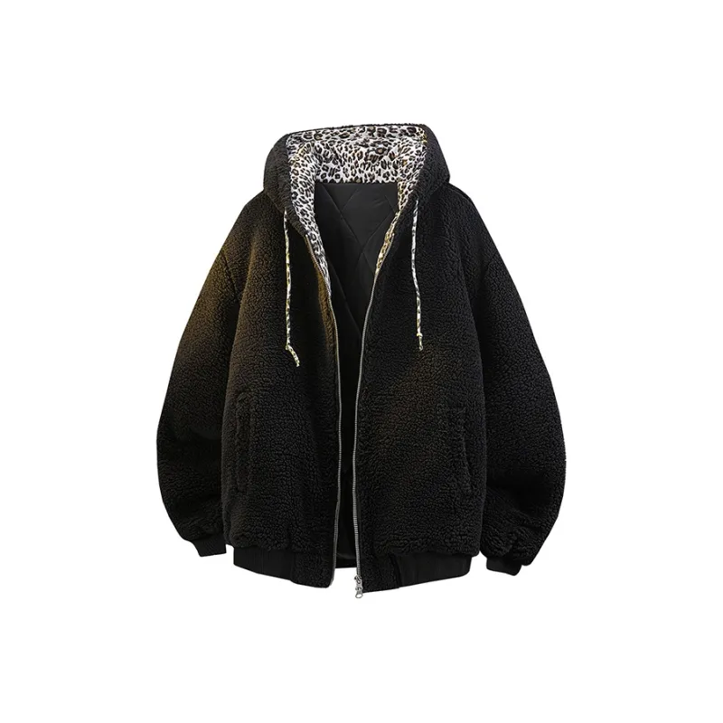 IXXPD Хлопковый пуховик унисекс с леопардовым принтом черный