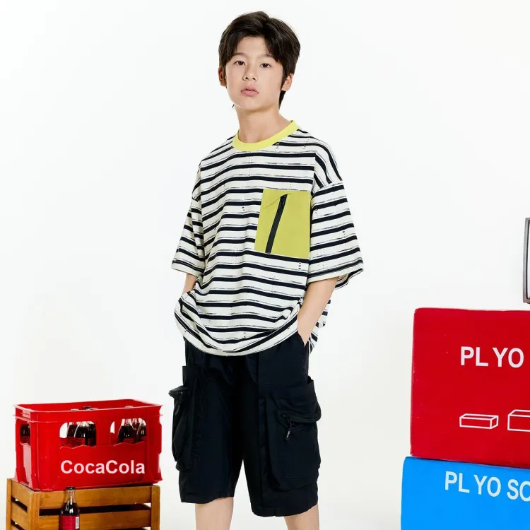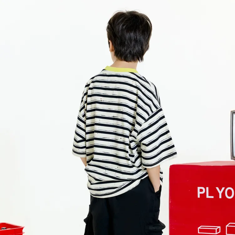 Izzue Черный Абрикос Полосы BKL Kids T-рубашки