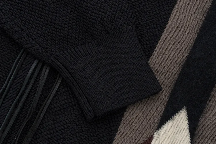 Черная шерсть: 53,1% альпака, 26,6% полиамид, 13,8% овечья шерсть, 6,5% эластан. Подкладочная ткань и остальные нити: 62,4% вискоза, 37,6% полиамид