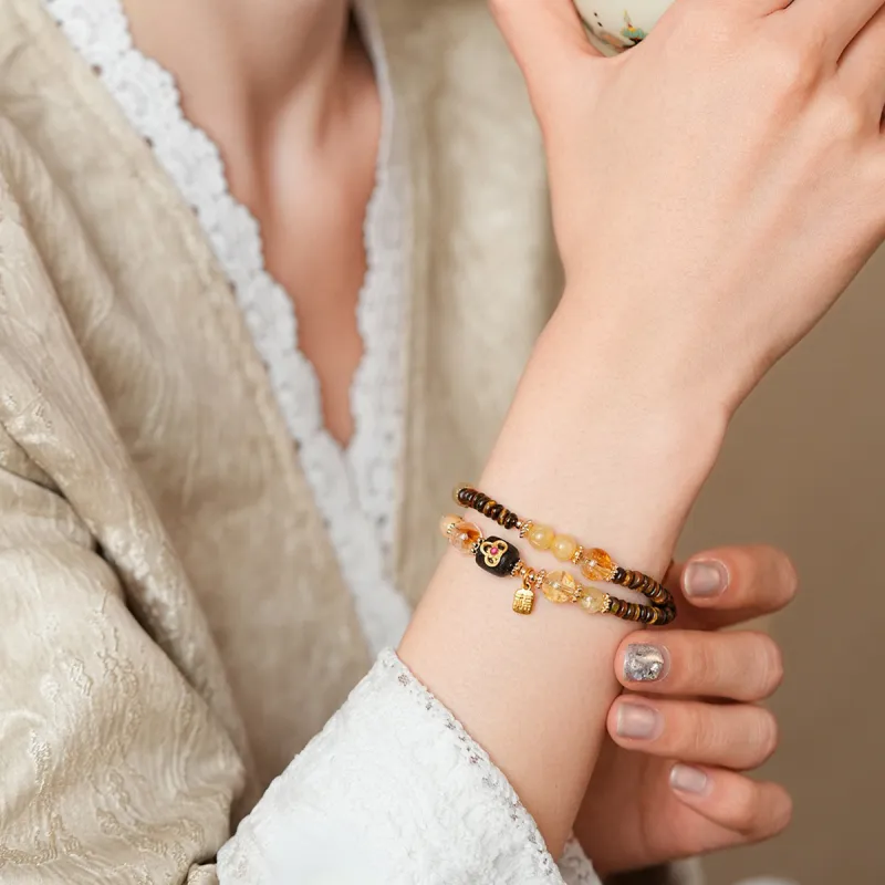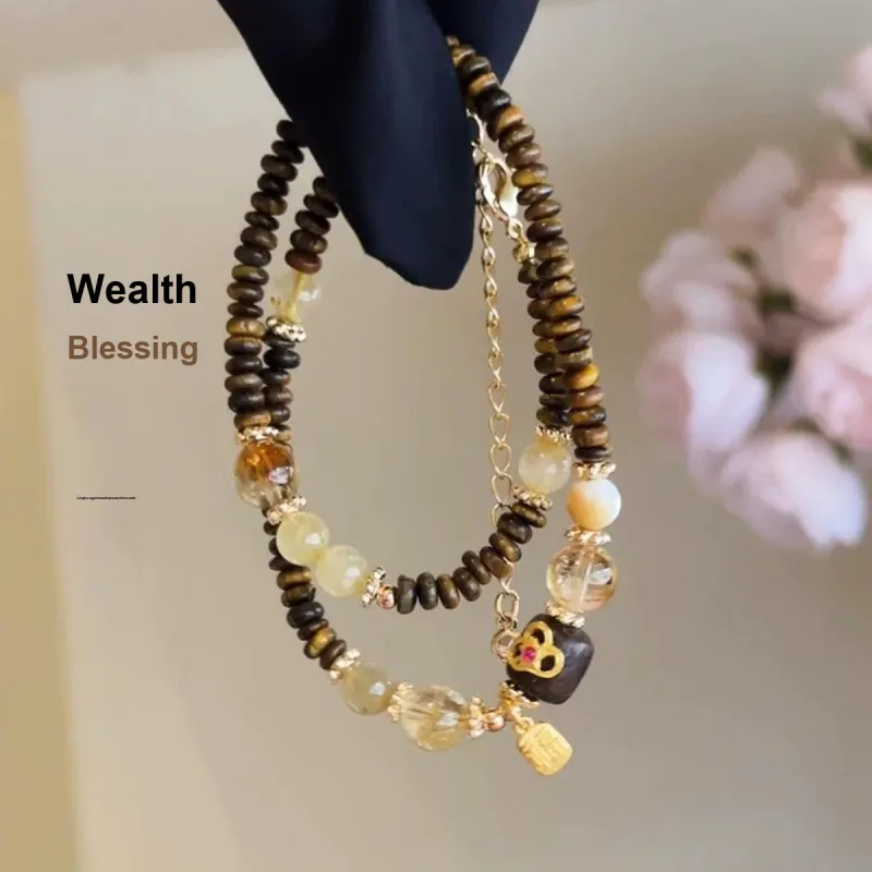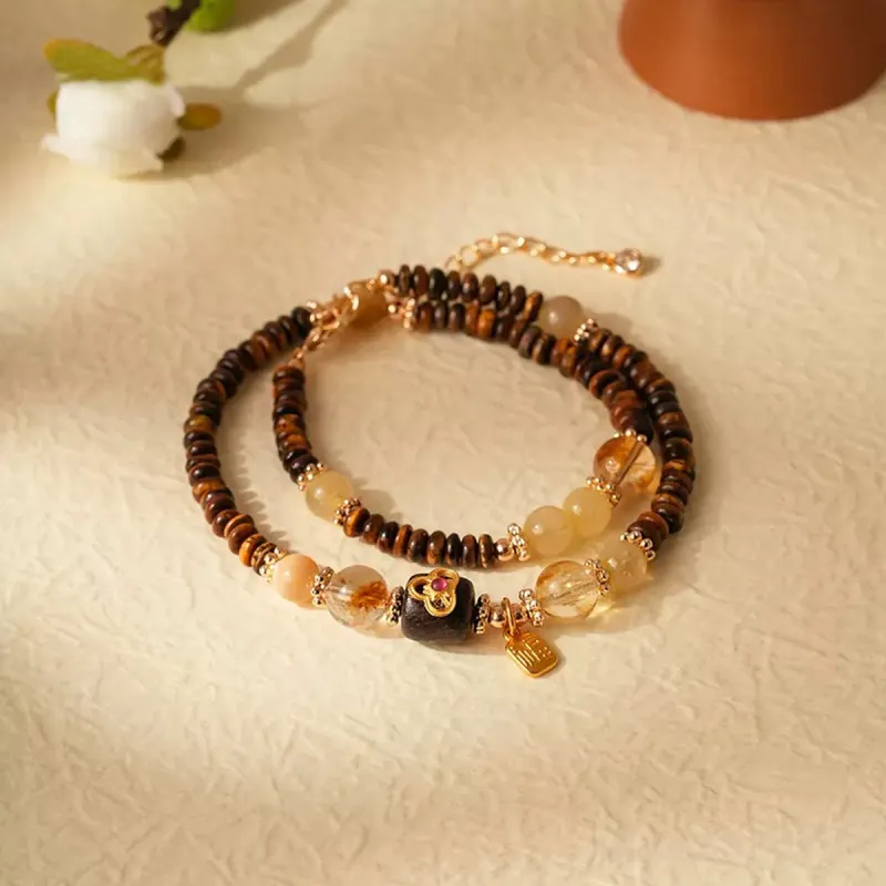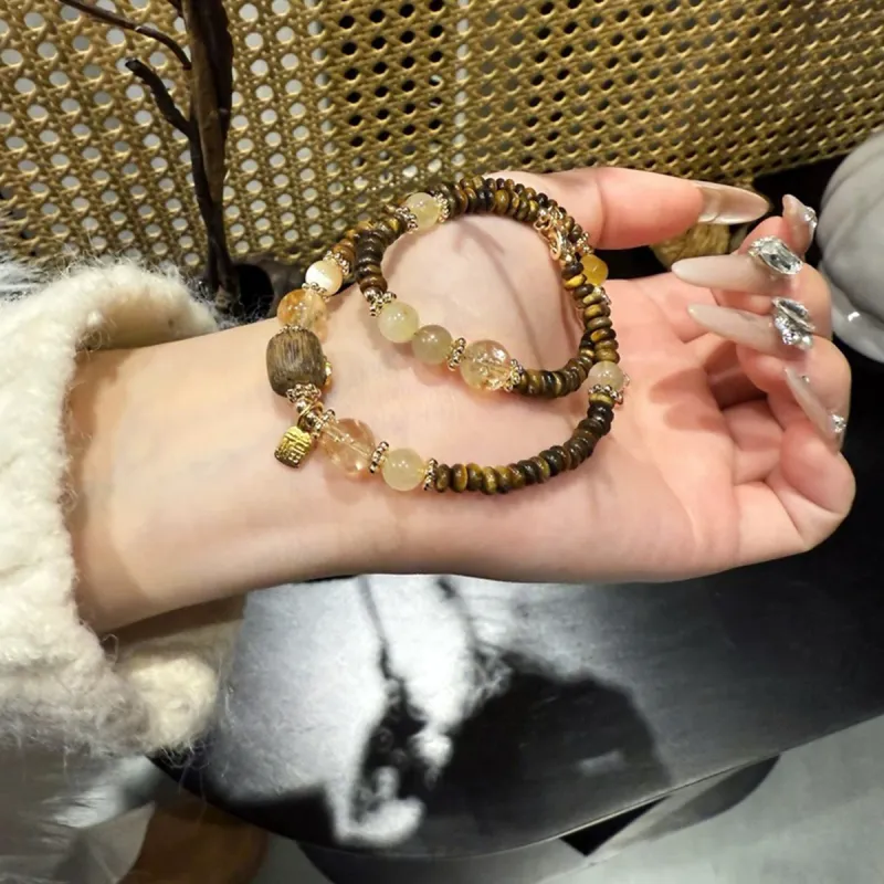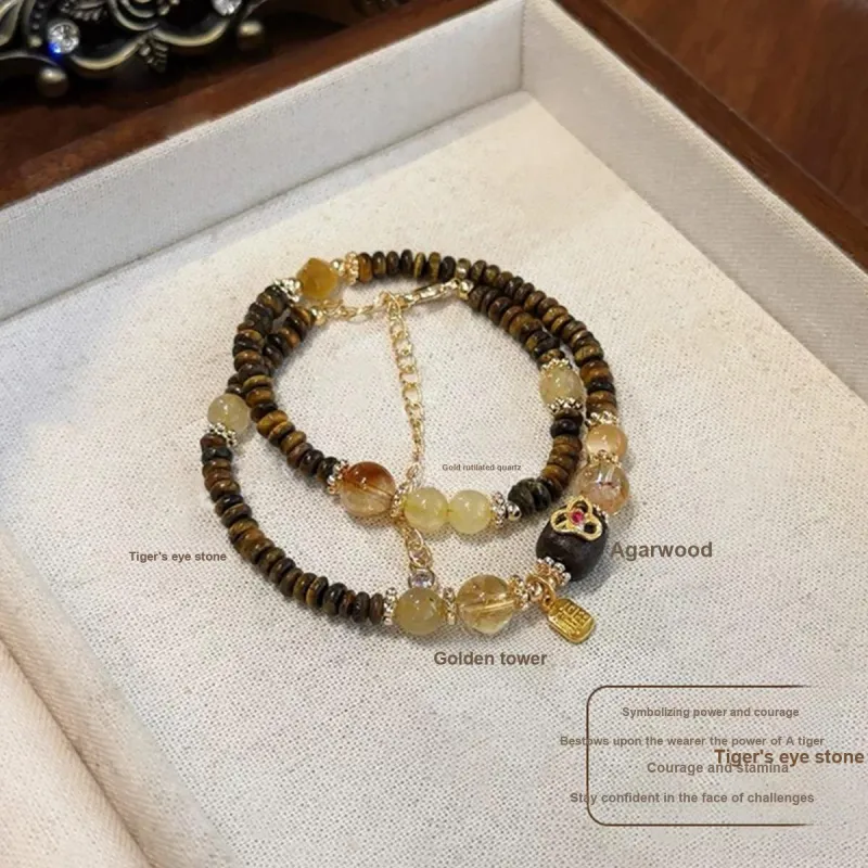 Стиль:Лингху Агаровое дерево Двухслойный Кристальный Браслет с Бусинами