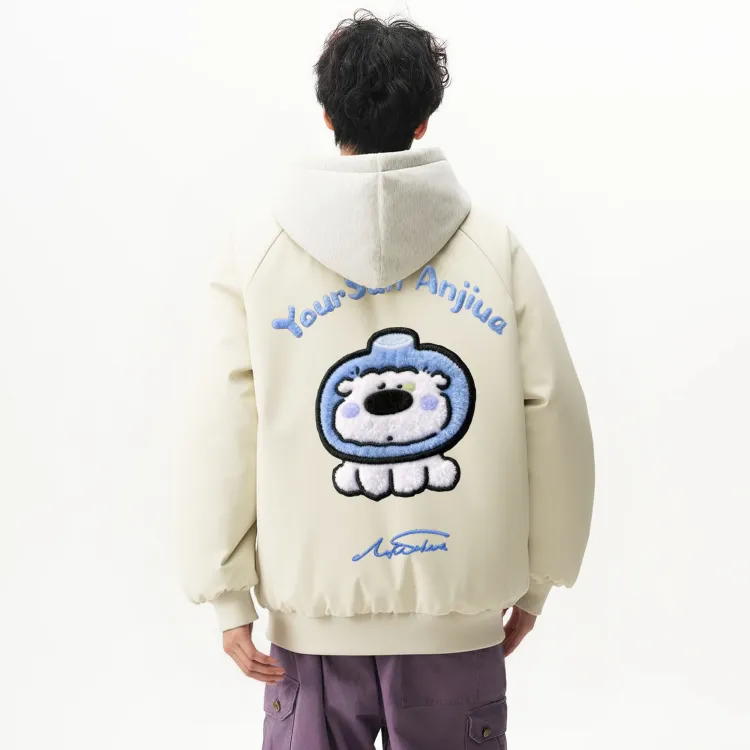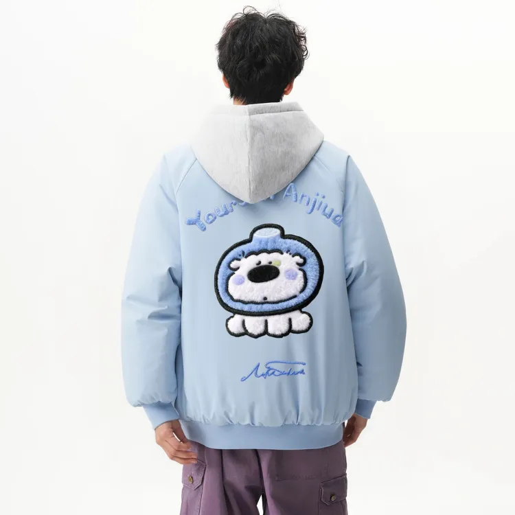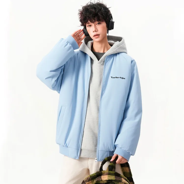 Светло-синий хлопковый пуховик (в комплекте с высококачественным белым и серым свитшотом с фотокемией)