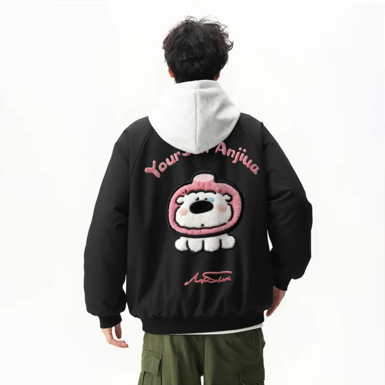 Черный хлопковый пуховик (в комплекте с высококачественным бело-серым свитшотом с фотанией)