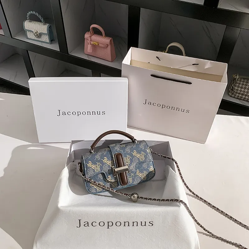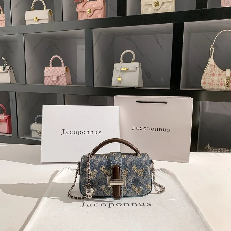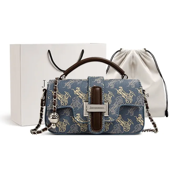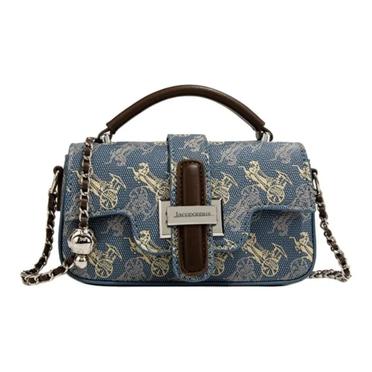 Jacoponnus Сумка из коровьей кожи Маленькая Женская Коричневая и Синяя Carriage