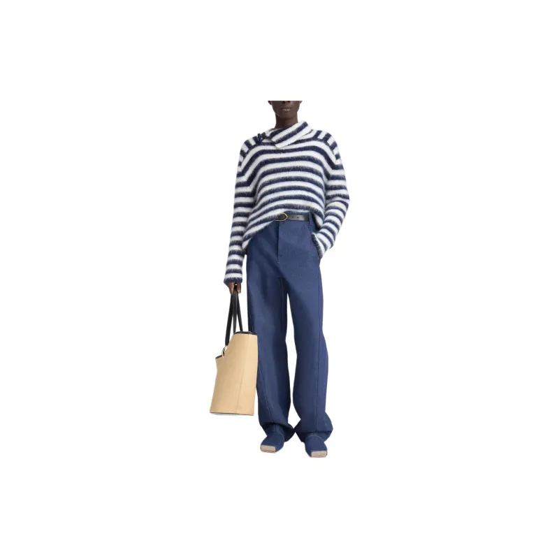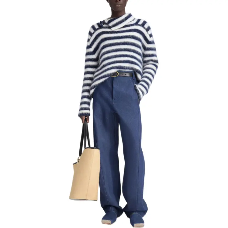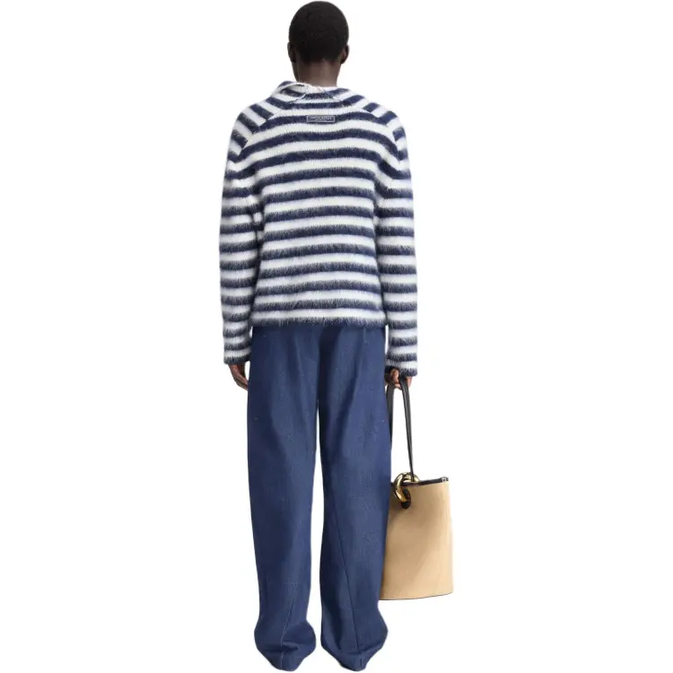 Jacquemus FW24 Полосатый Мохер JUMPER Свитер Мужской MULTI Темно-синий MULTI Морской
