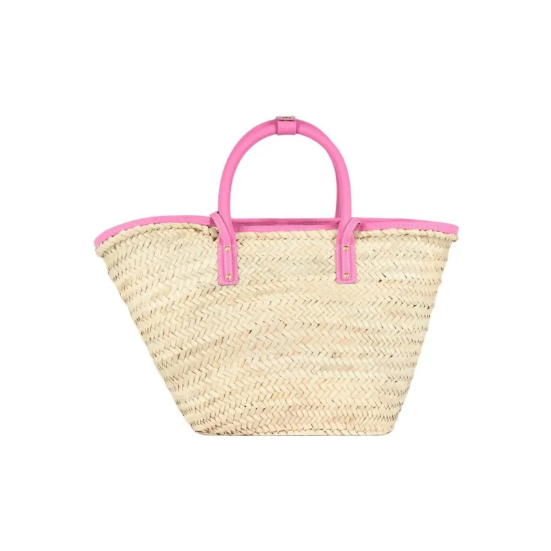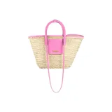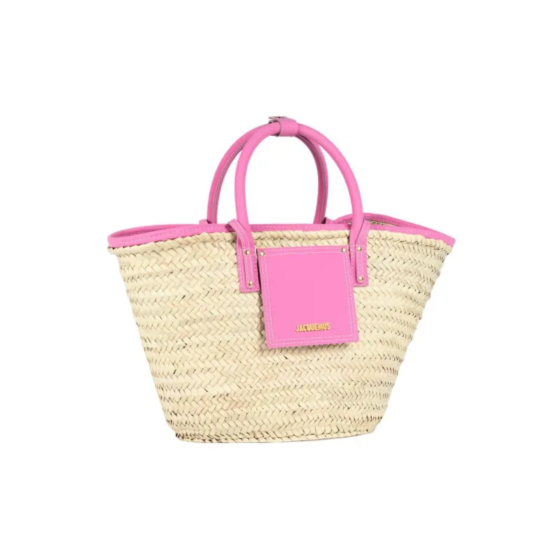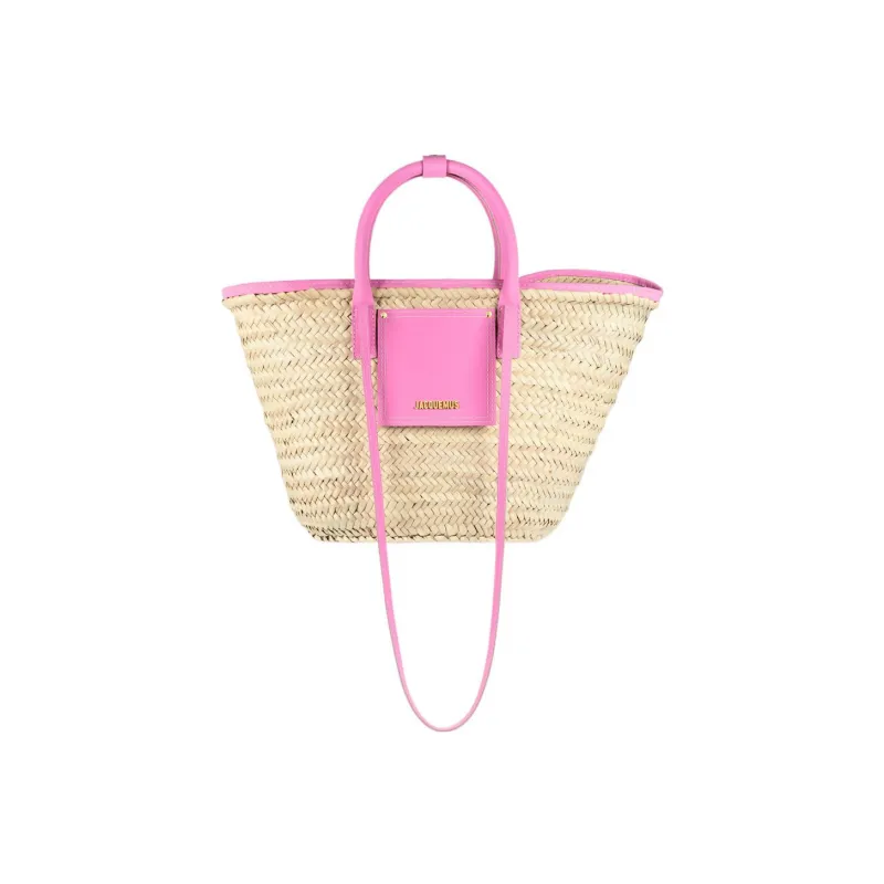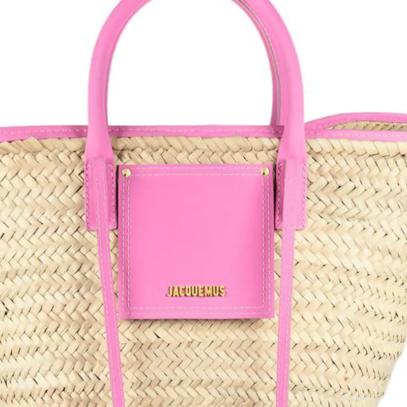 Jacquemus Palm Leaf Straw Woven Телячья кожа Корзина Сумка через плечо Сумка Женская Светло-розовая