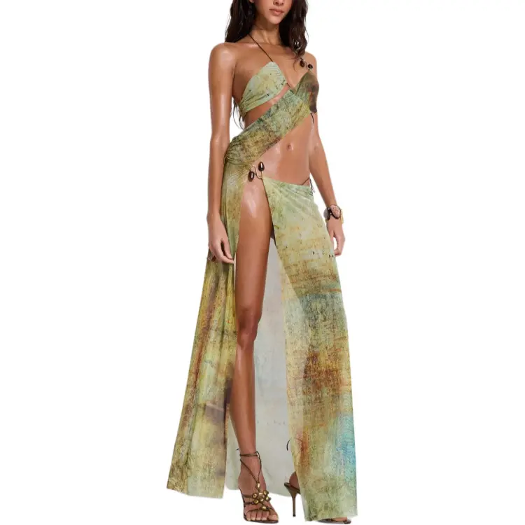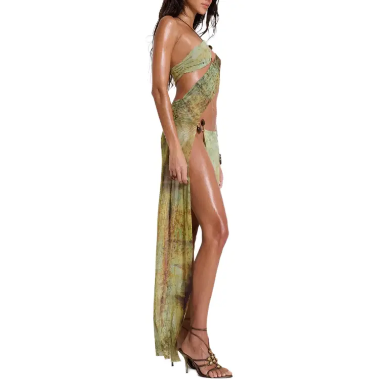 Jaded London Cantha Асимметричное Платье с Вырезами Maxi Slip Платье Женское Зеленый Зеленый