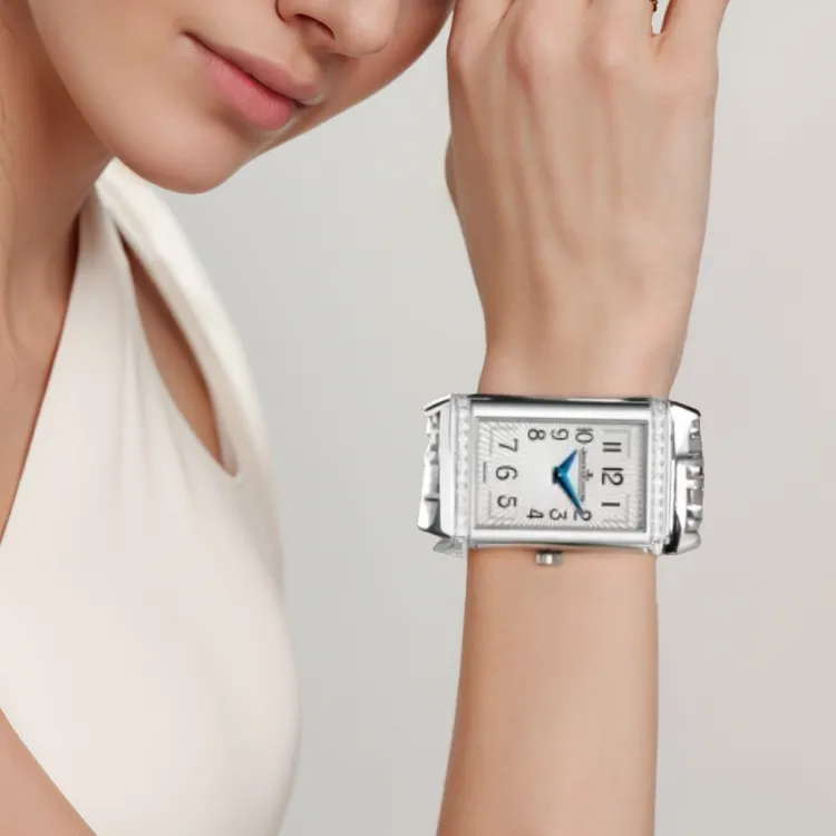 Jaeger LeCoultre Кварцевый механизм Женские часы Flip Collection REVERSO, 40,1 мм * 20 мм, серебряные