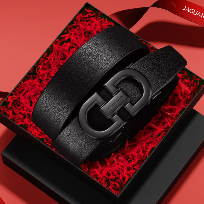 JAGUAR Улучшенный Cut Out Автоматическая застежка для повседневной работы ремни из коровьей кожи мужской черный ширина 3,5 см