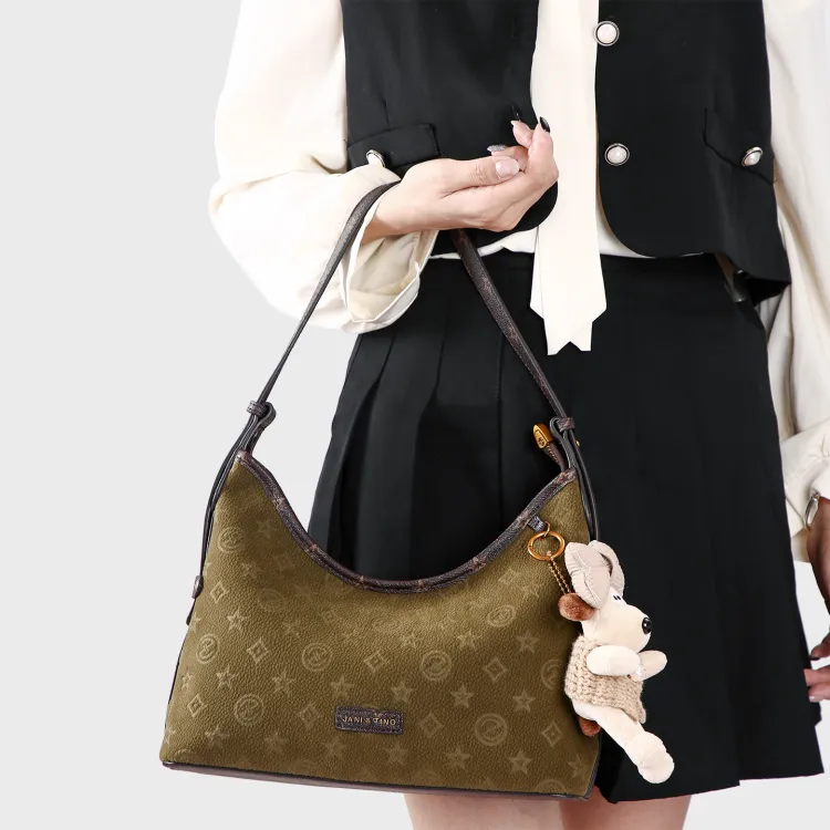 JANITINO Полиуретан ПУ (полиуретан) Сумка через плечо Женская Оливково-зеленая