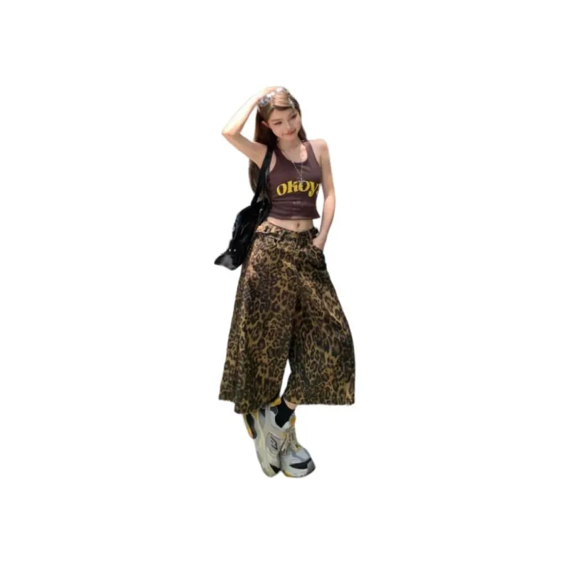 JASONWOOD Леопардовый принт Штаны капри Женские Джинсы