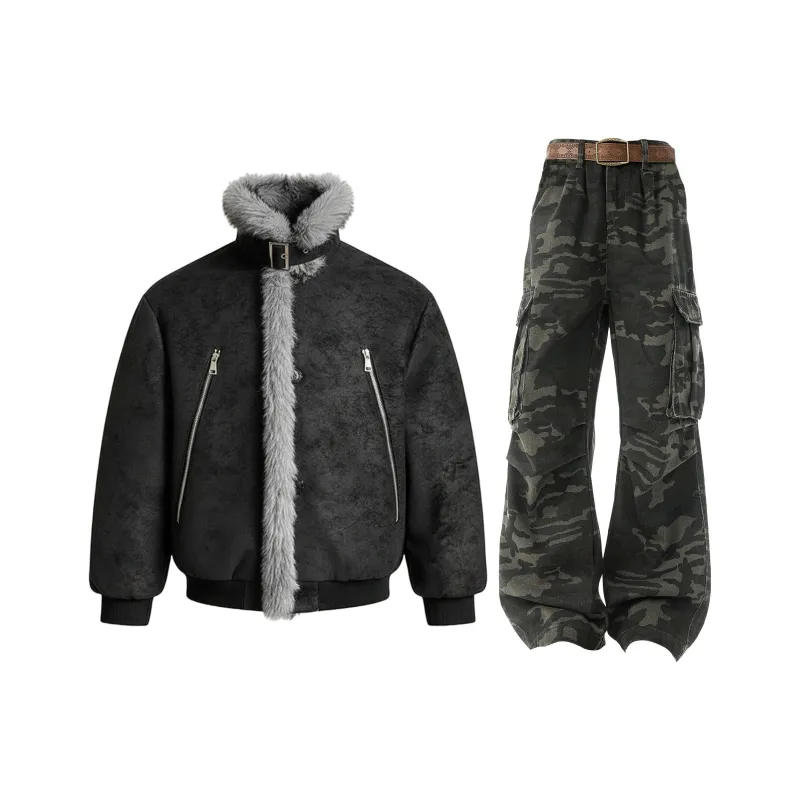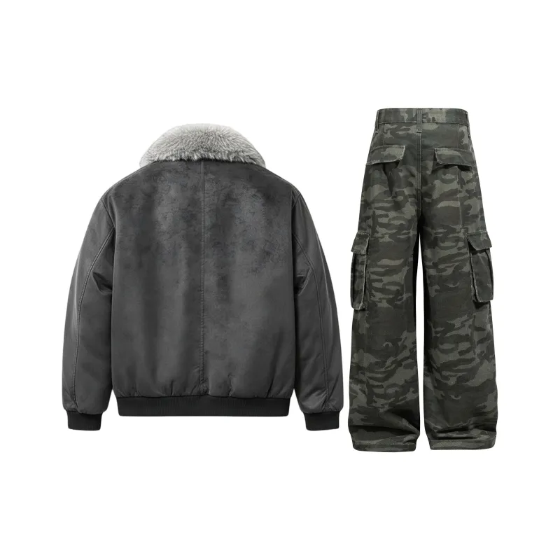 Gray Top + Camouflage Jeans